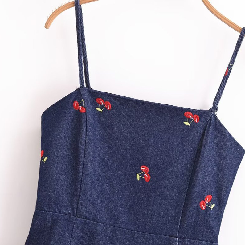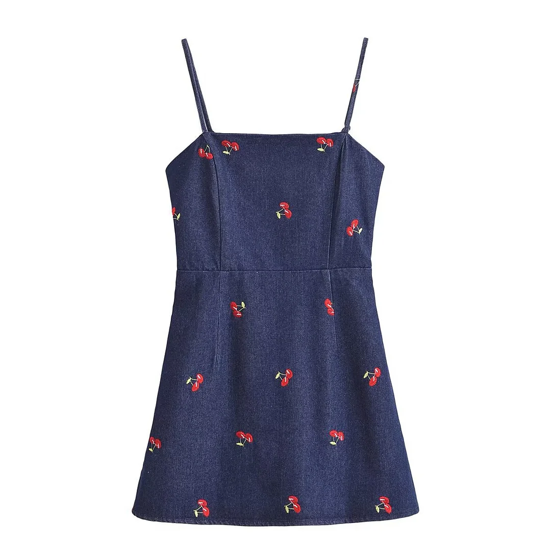 Nigikala Nigikala Retro-Dress Seaside Resort Sling Dress French Fresh Sweet Print A-Word Mini Dress Summer Girl