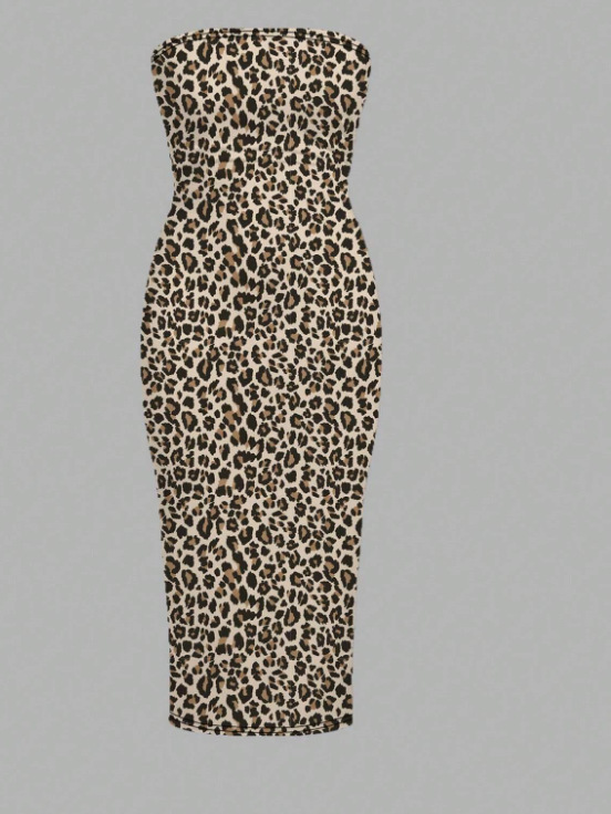 Nigikala Nigikala Sexy Leopard Prints Without Shoulder Straps To Long Casual Dress