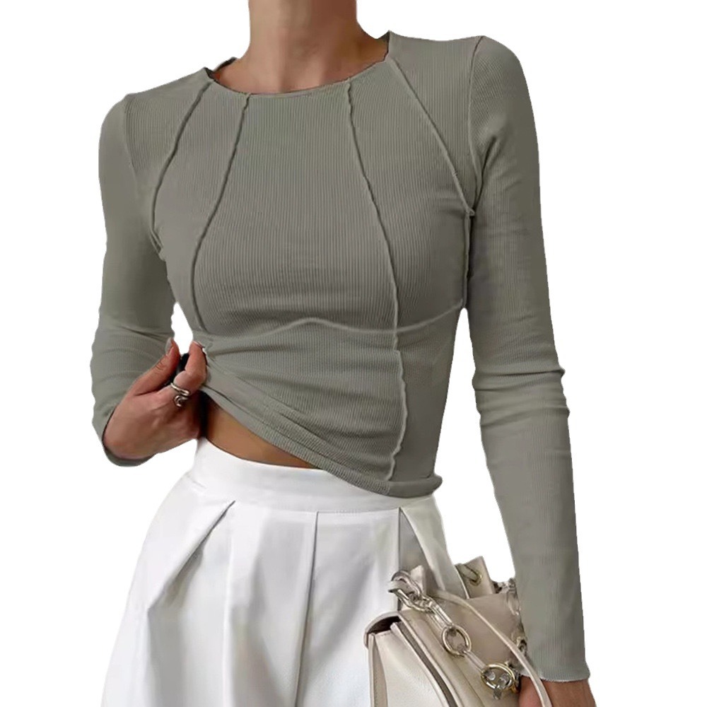 Nigikala Nigikala Shein New Spring Autumn New Sweet Spicy Solid Color Line Long-Sleeved Collar T-Shirt Girl