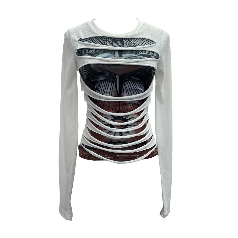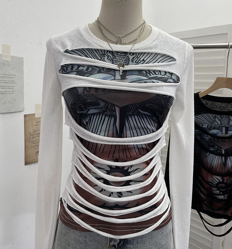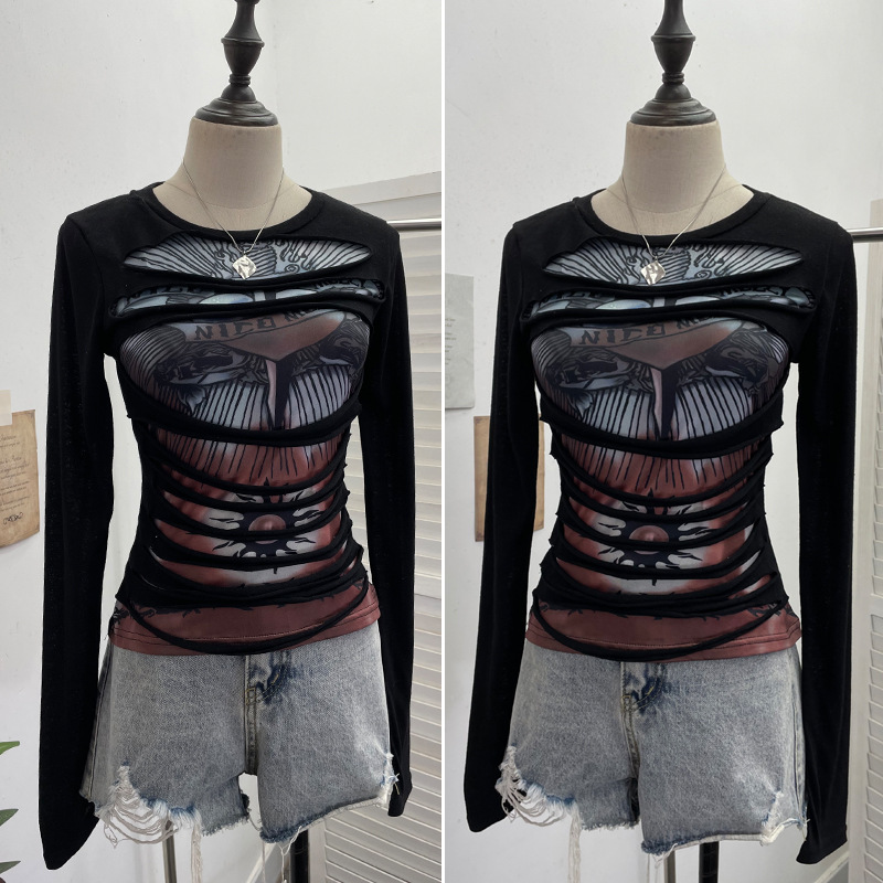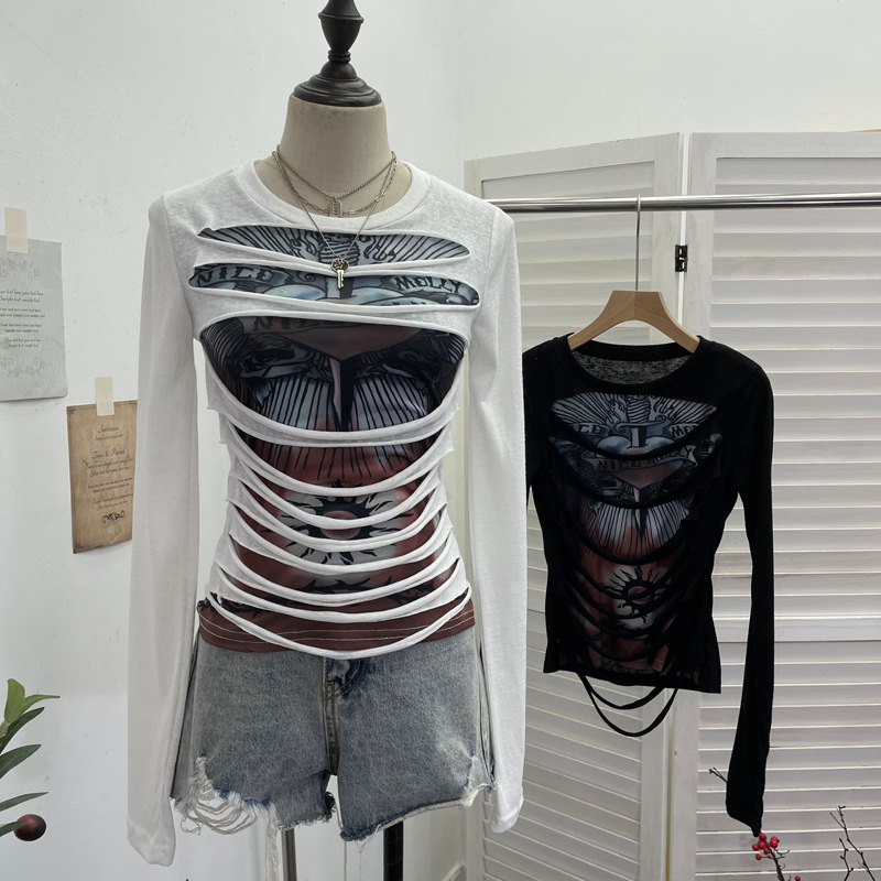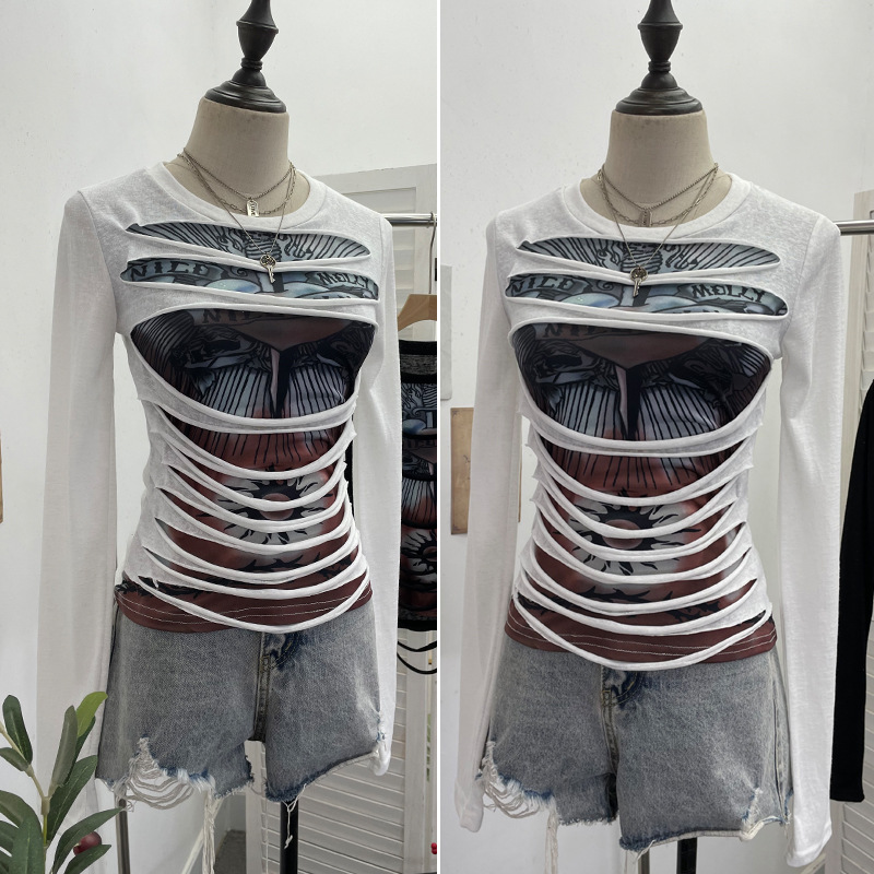 Nigikala Nigikala Shooting Design Y2k Vintage T-Shirt Prints Long-Sleeved T-Shirt Slimming Bottom Top 1176
