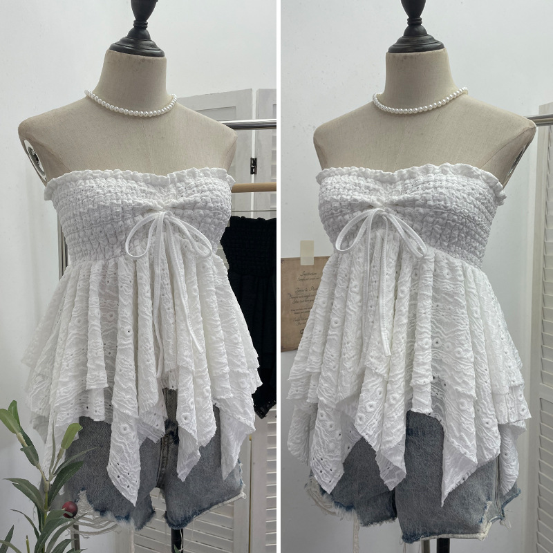 Nigikala Nigikala Shooting Holiday Wind Bra Strap With Bow Irregular Dress Loose Thin Short Sleeveless Top 9568