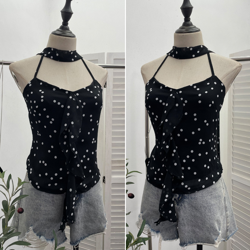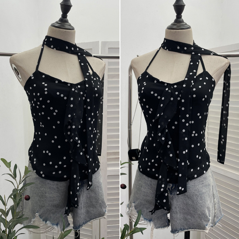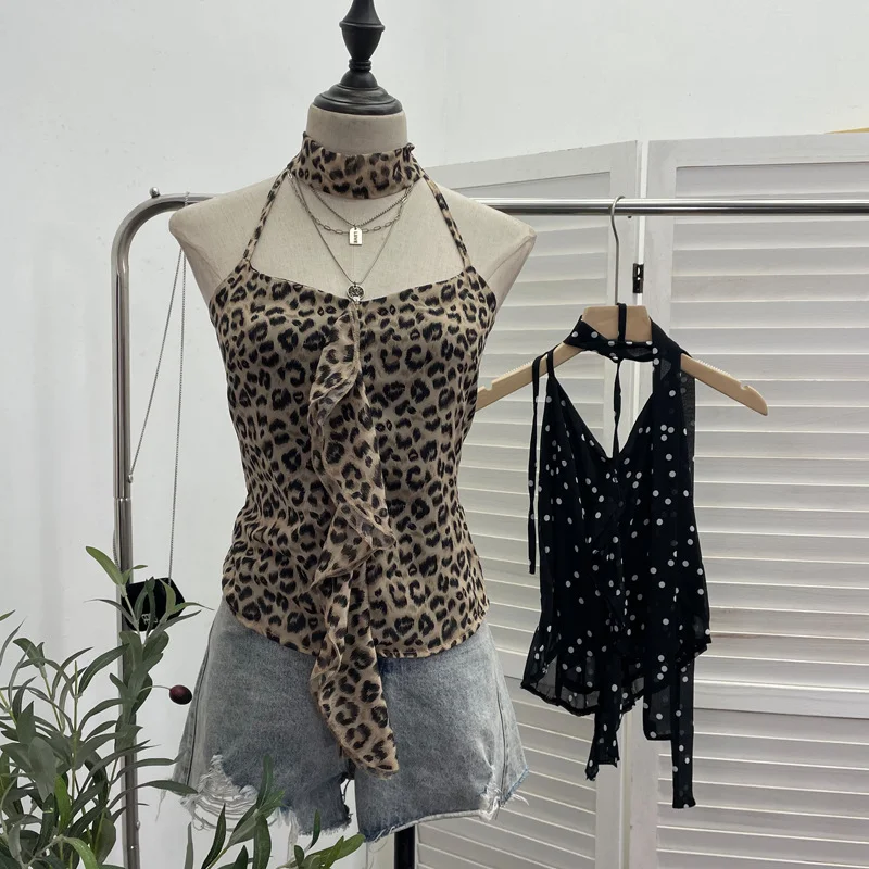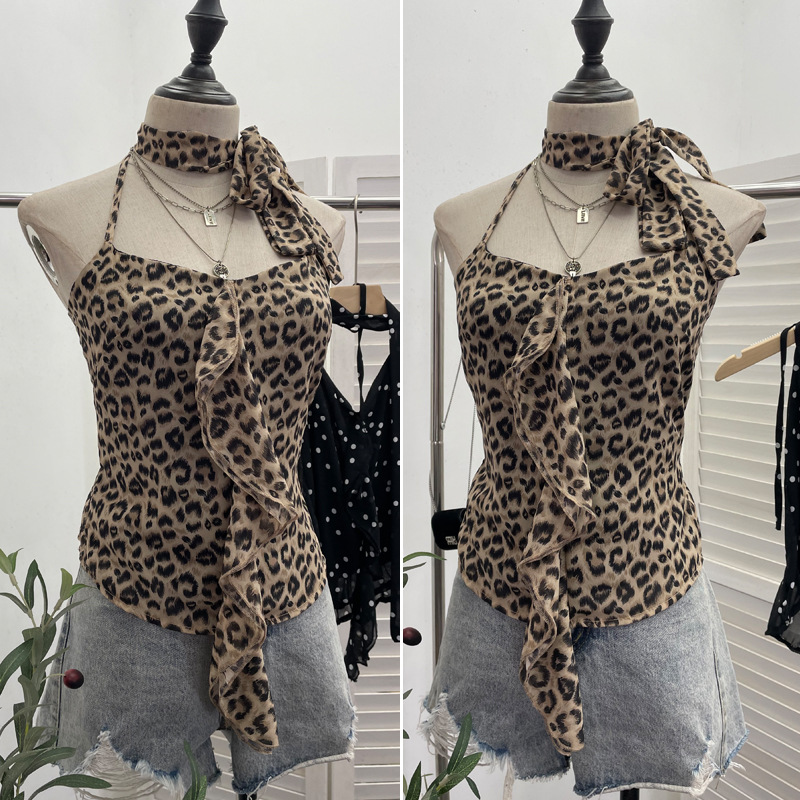 Nigikala Nigikala Shooting Lotus Side Hanging Neck Leopard Sling Female Summer Hot Waist With Small Vest Short Top 9139
