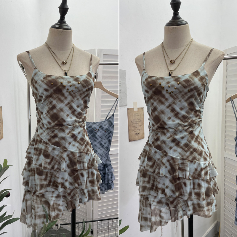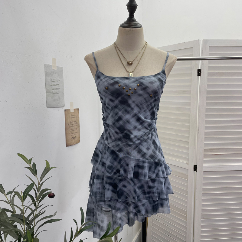 Nigikala Nigikala Shooting Mesh Yarn Irregular Rivet Vest Dress Women 2025 Summer Dress New Lotus Edge Sleeveless Top 1273