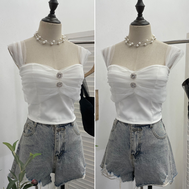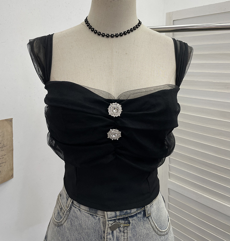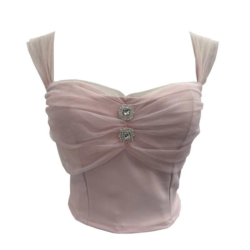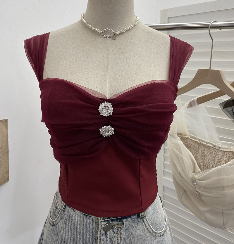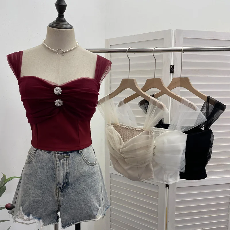 Nigikala Nigikala Shooting Net Red Pure Lust Folding Net Yarn Splicing Sling Sling Vest Bratie Short Sleeveless Top 8039