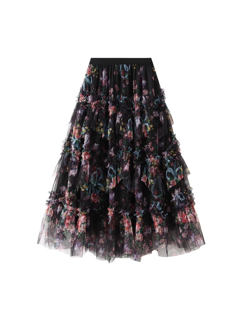 Nigikala Nigikala Splicing Color Flower Mesh Dress Dress Girl 2025 Spring Court Style Temperament Cake Skirt 8077