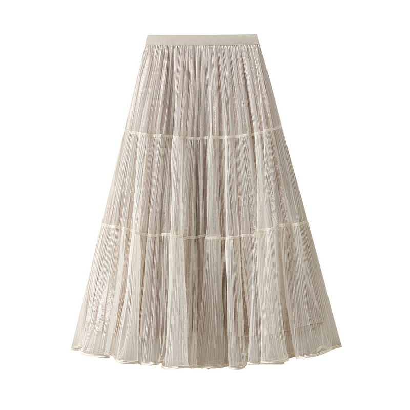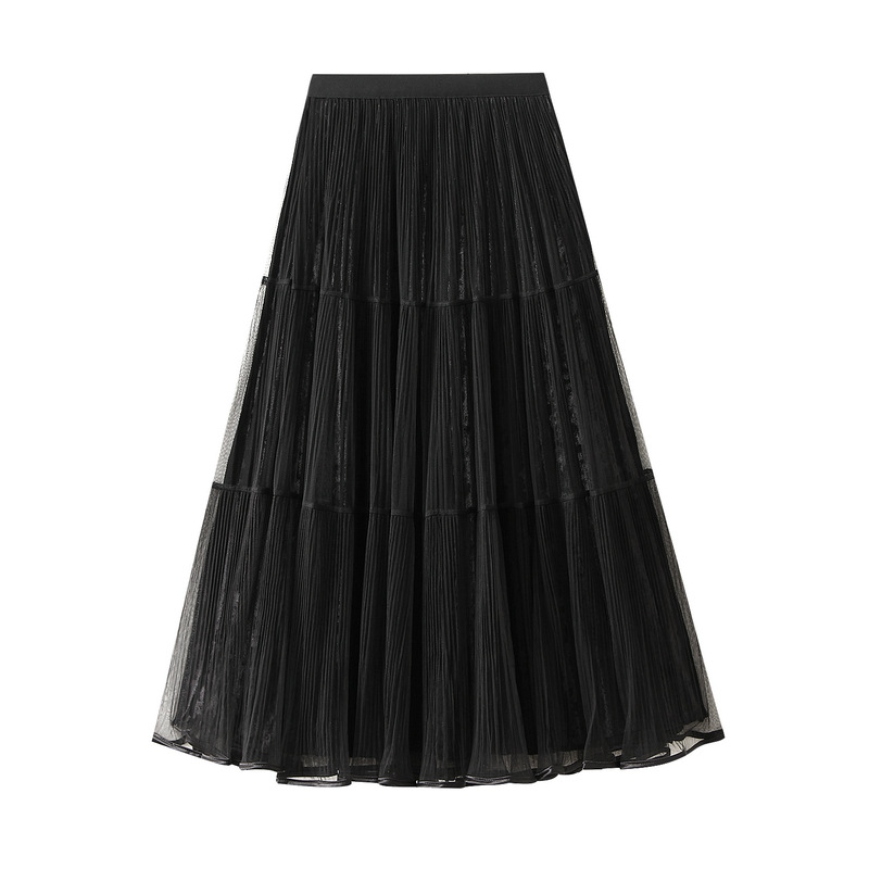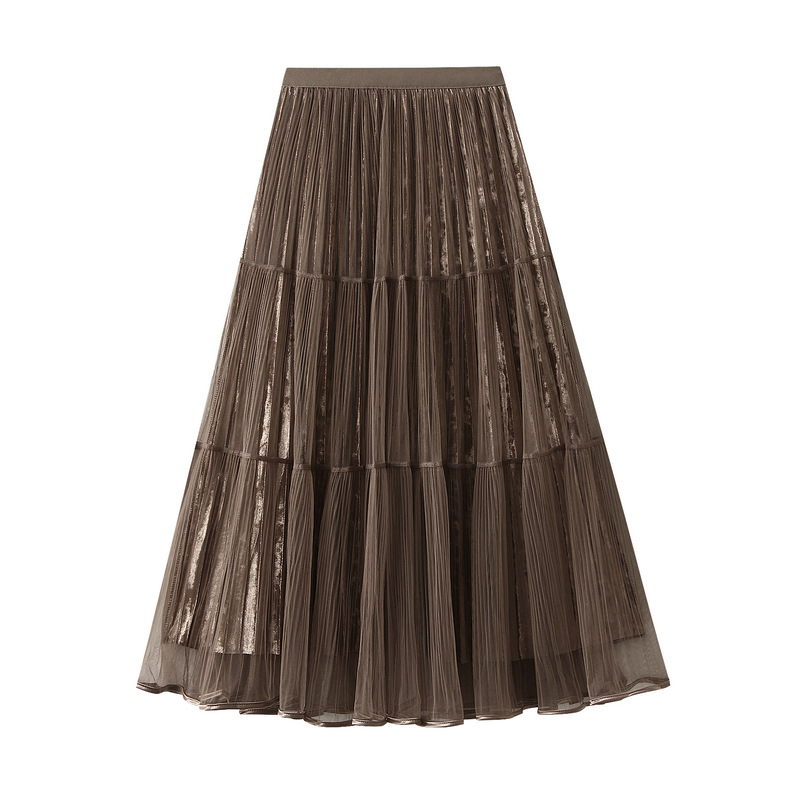 Nigikala Nigikala Splicing Hundred Fold Mesh Velvet Dress Women Autumn And Winter New High-Rise Thin A-Sword Skirt Mid-Long 5202