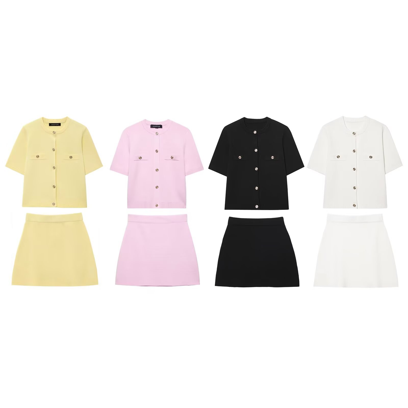 Nigikala Nigikala Spring 2025 New Women's Short-Sleeved Simple Fashion Knitted Jacket Skirt 1822023 1822025