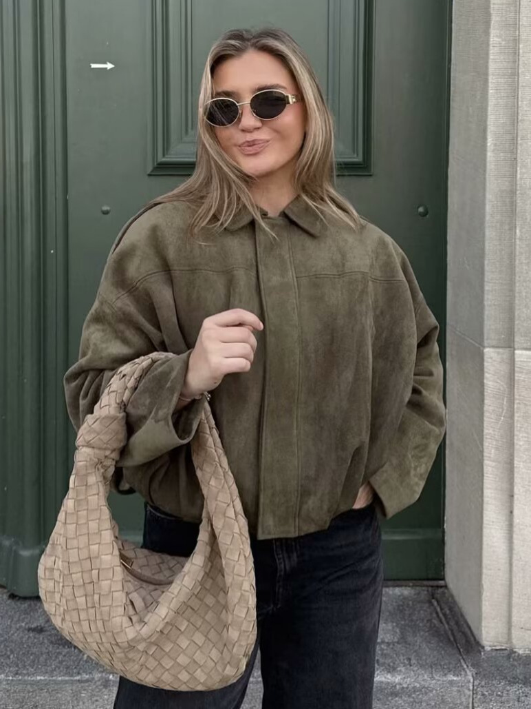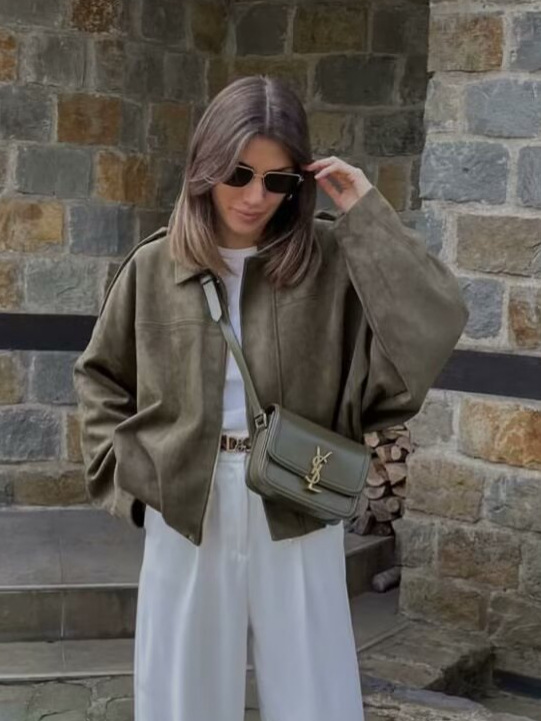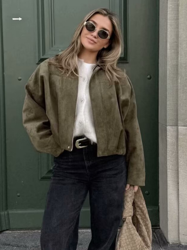 Nigikala Nigikala Spring And Autumn Pilot Jacket Bat Sleeve Zipper Loose Tuff-Sense Coat Women's Casual Jacket B6