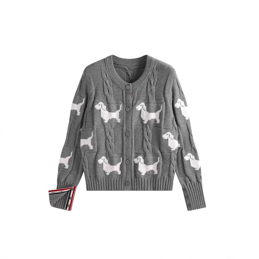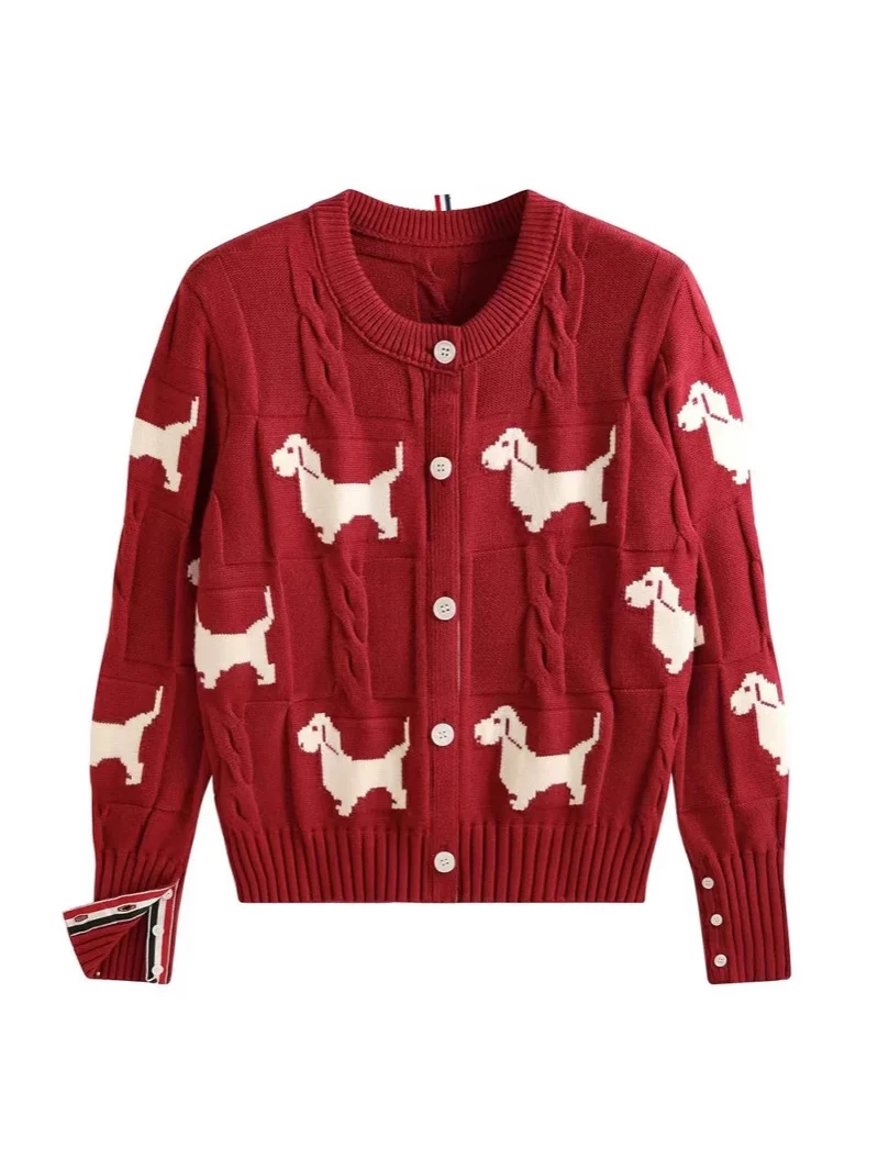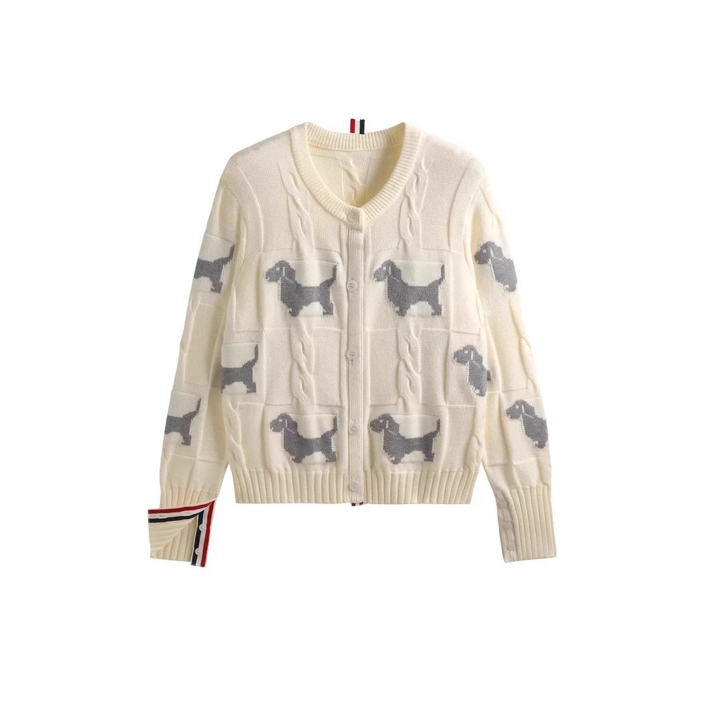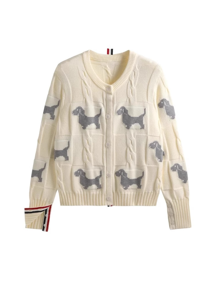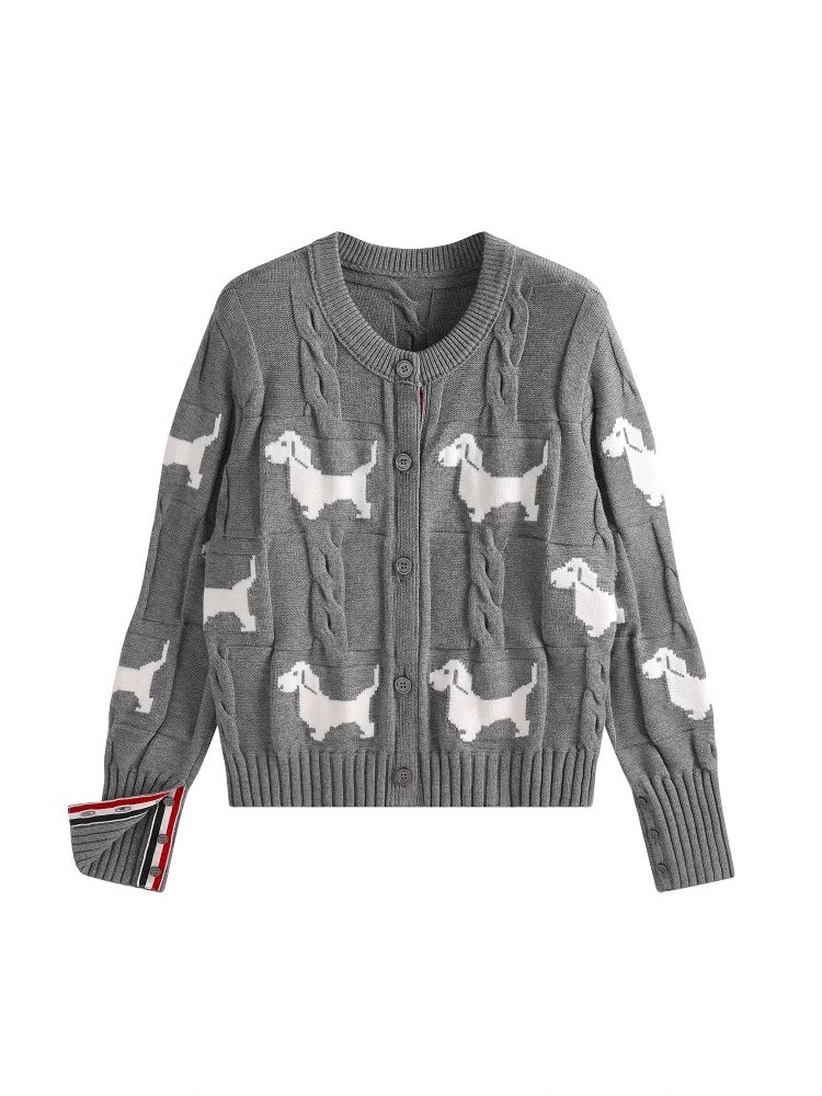 Nigikala Nigikala Spring And Autumn Women's Round-Neck Knitted Shirt Jacket Puppy Pattern Sweater Women Put On The Long Sleeve Design Sense