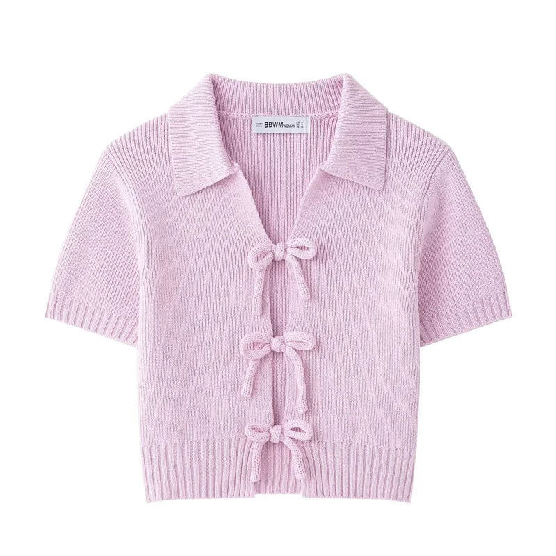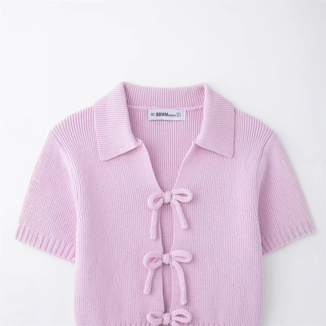 Nigikala Nigikala Spring And Summer New Female Fashion Sweet Fresh Bow Knitted Top 2142007