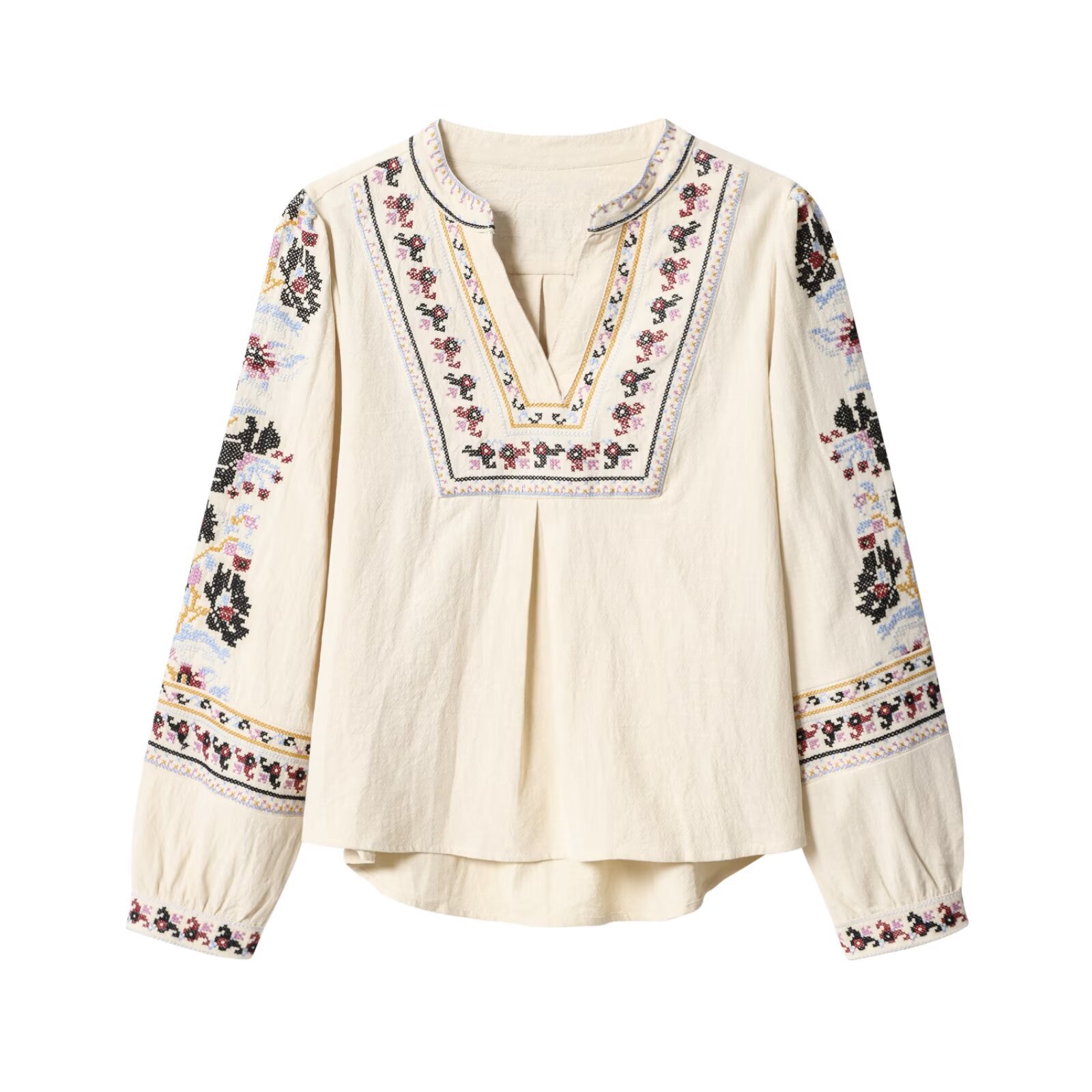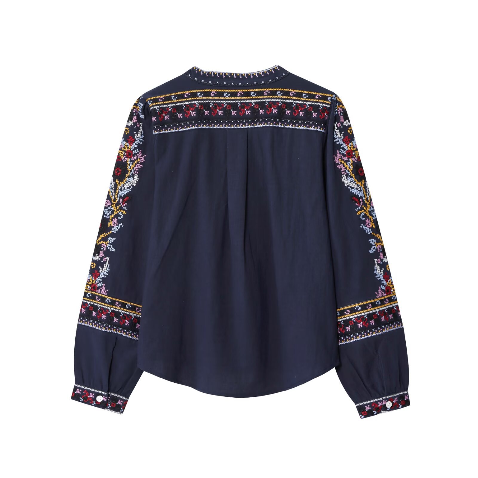 Nigikala Nigikala Spring And Summer New French V-Neck Heavy Industry Embroidery Shirt Embroidered Long Sleeves