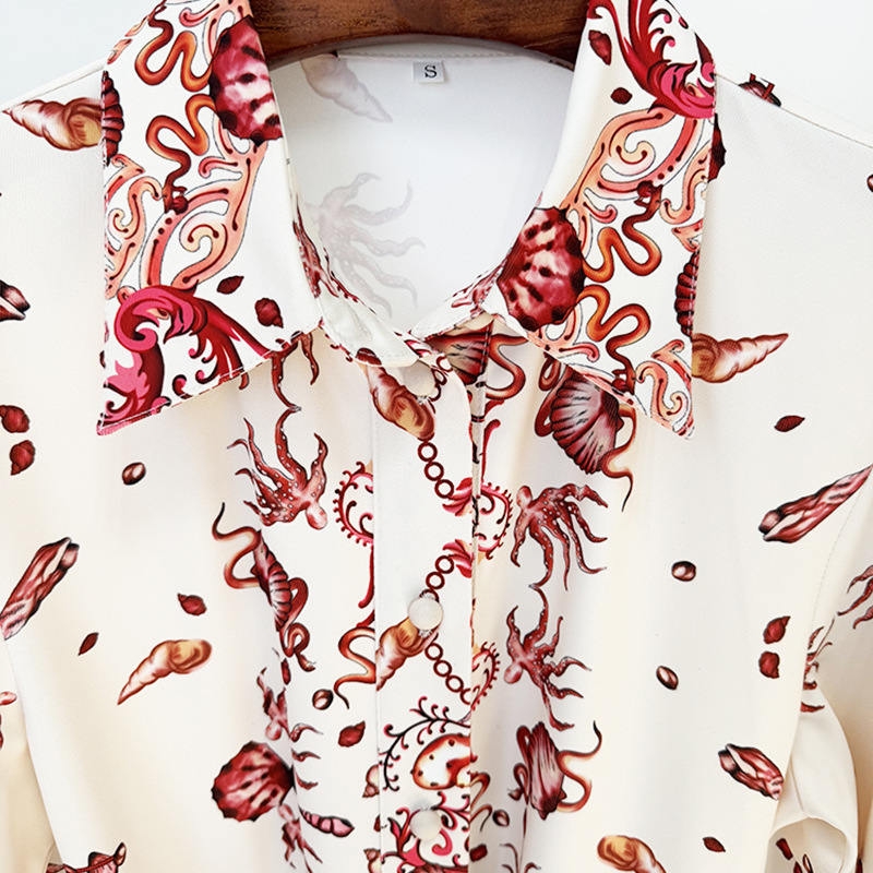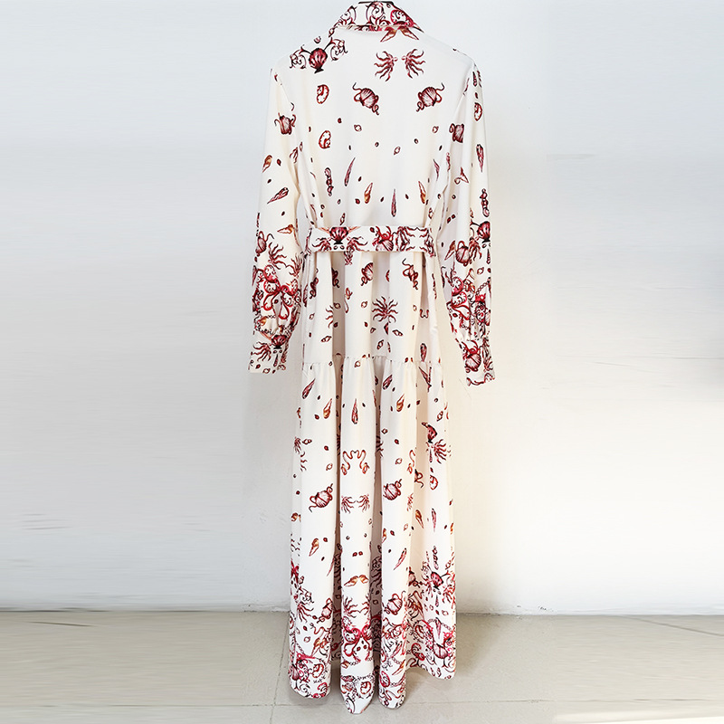 Nigikala Nigikala Spring And Summer New Star Fashion Holiday Casual Printed Shirt Long Dress Long Dress