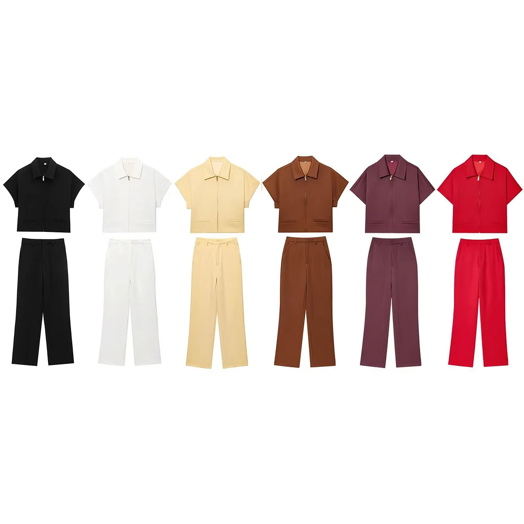 Nigikala Nigikala Spring New Women's Collar Short-Sleeved Short Coat Straight Trousers 8491053 8491054