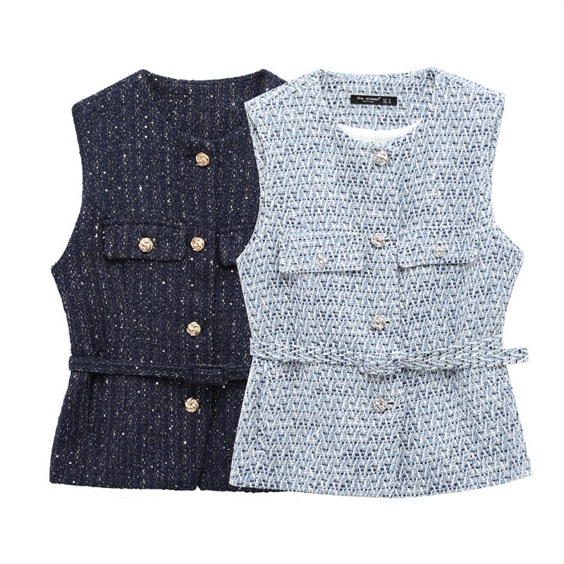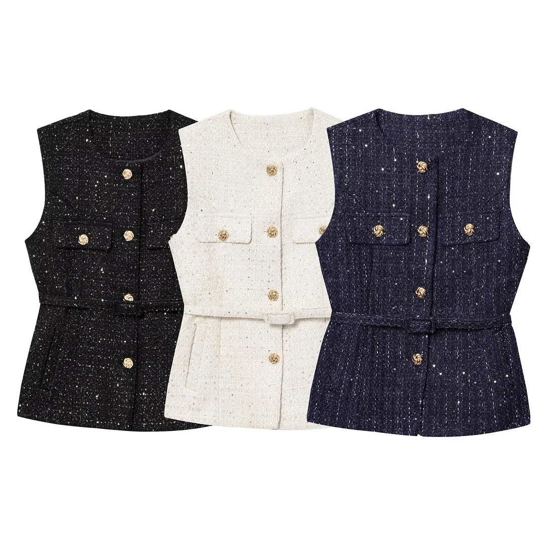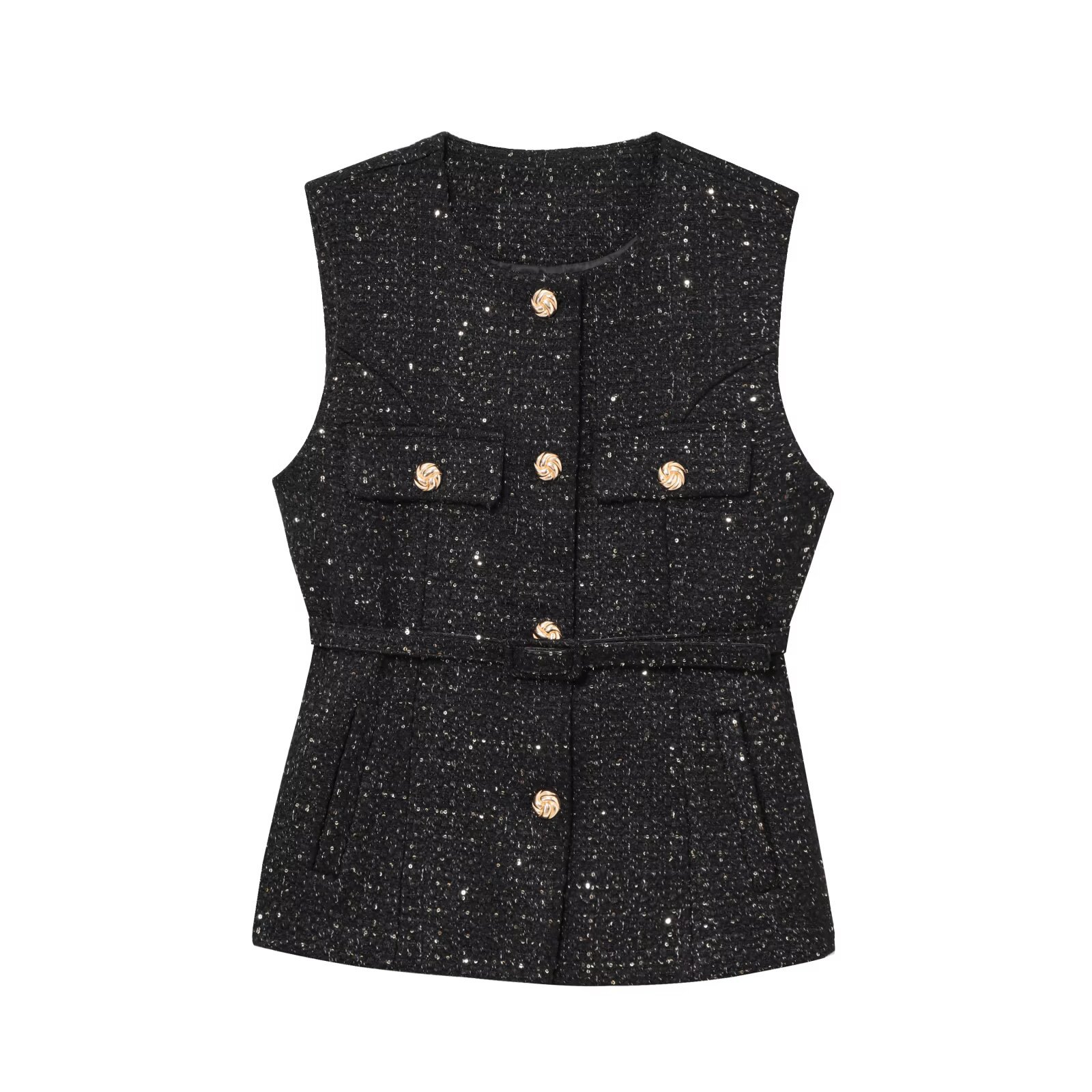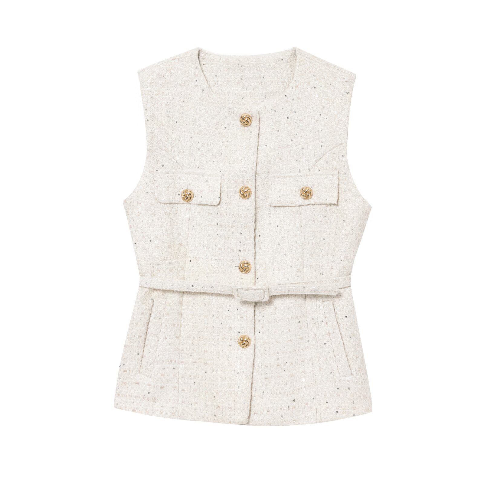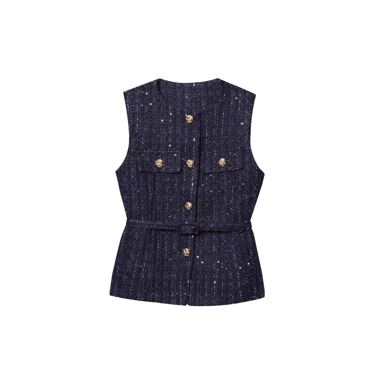 Nigikala Nigikala Spring New Women's Wear With Belt Metallic Wire Texture Vest Women 2132116