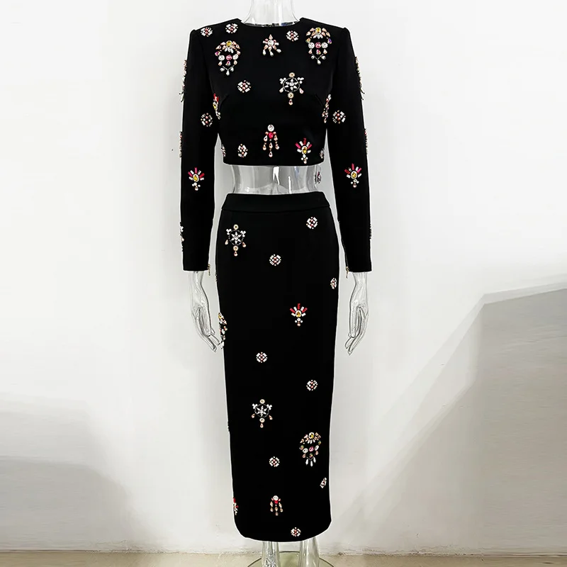 Nigikala Nigikala Star Fashion New Heavy Industry Nails Studded Short Top Dress Suit Two Sets