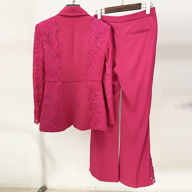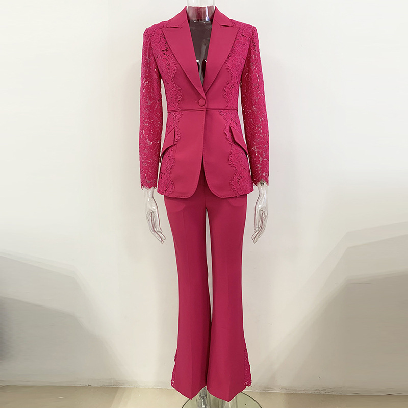 Nigikala Nigikala Star Fashion New Lace Splicing Body A Buckle Suit Horn Trouser Set Two Sets