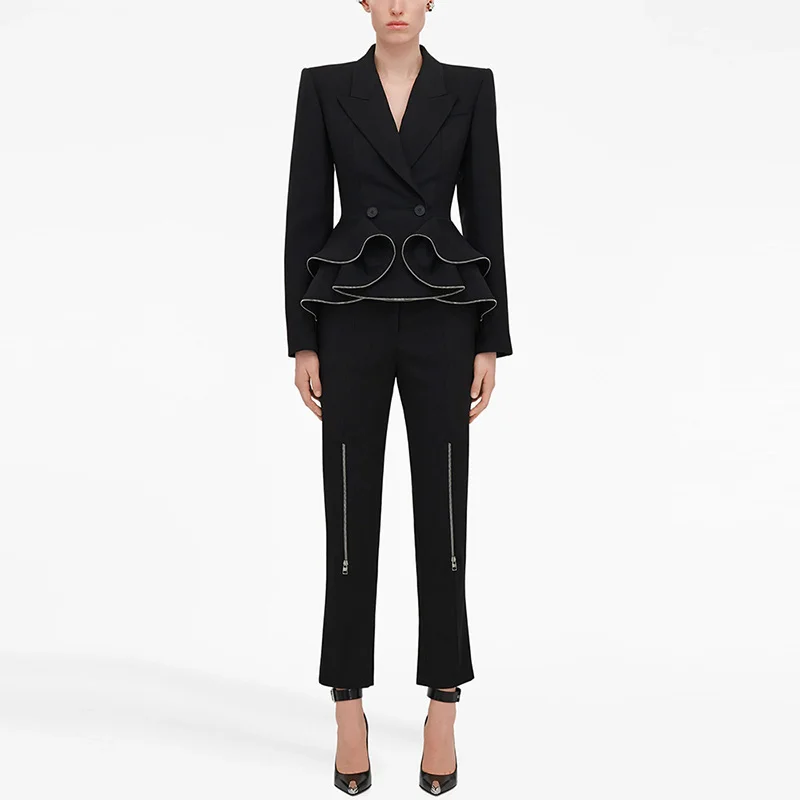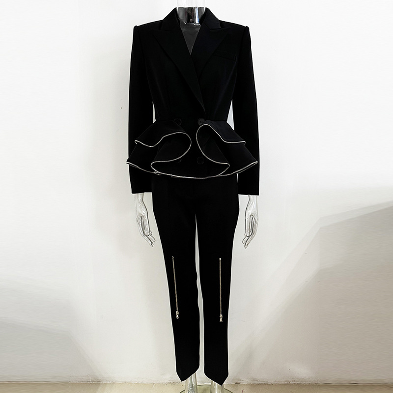 Nigikala Nigikala Star Fashion New Zipper Lotus Side Blazer Small Foot Trousers Set Two Sets