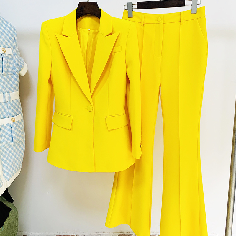 Nigikala Nigikala Star Professional Fashion Fashion A Buckle Button Long Suit + Horn Pants Set Two Sets