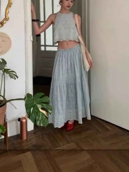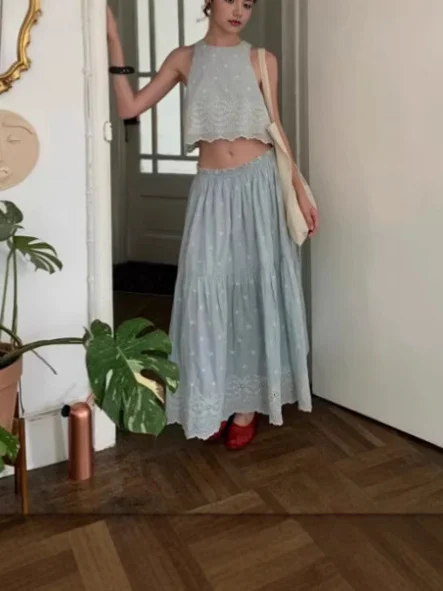 Nigikala Nigikala Style French Blue Holiday Vest Sleeveless Dress High-End Vest Half Dress Two Sets