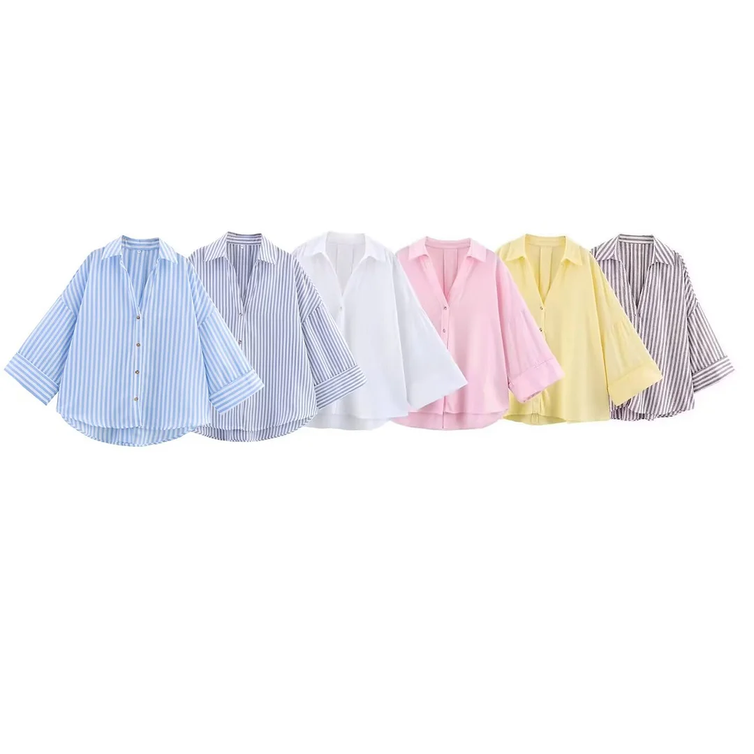Nigikala Nigikala Summer New Slimming Linen-Blend Wi-Sleeve Shirt 2363801