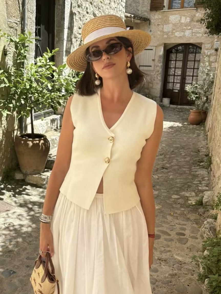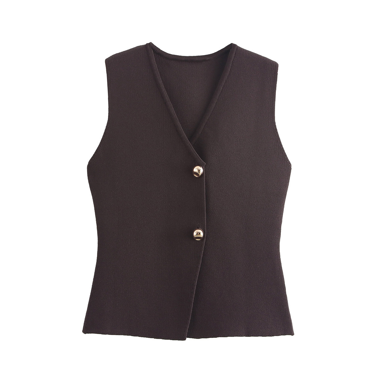 Nigikala Nigikala Summer Women's Solid Color Repair Gold Button Knitted Vest Blouse B62038