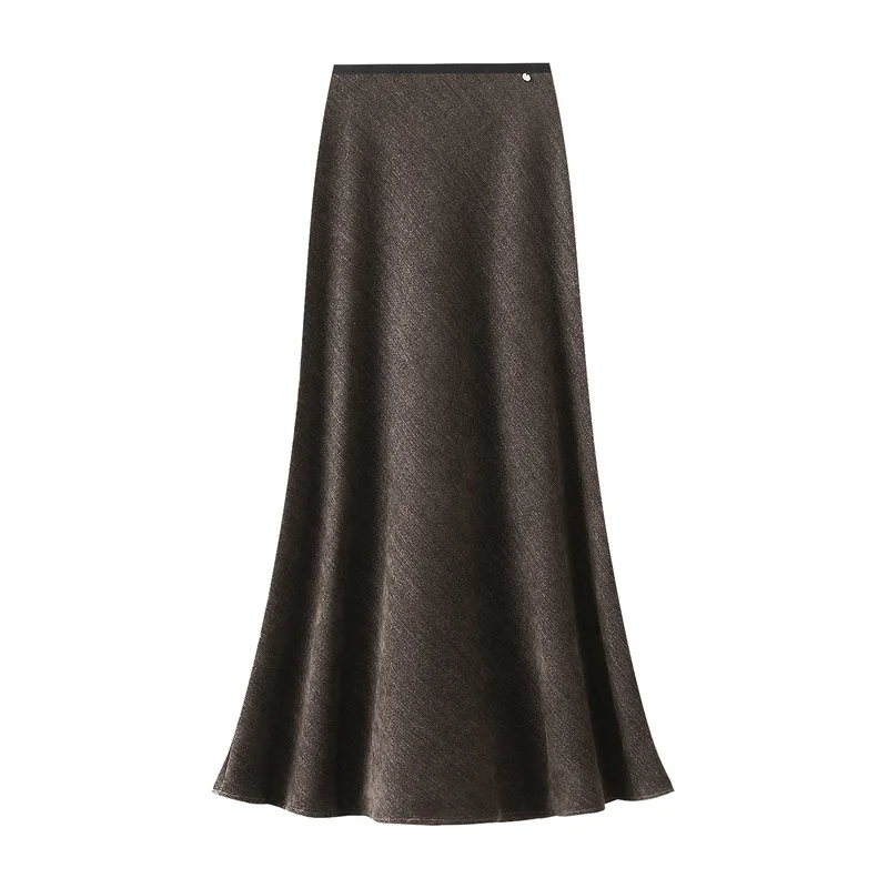 Nigikala Nigikala Tail Half Dress Women 2025 Autumn New Design Sense Metal Buckle High-Waist Temperament Medium Long A Skirt 9989