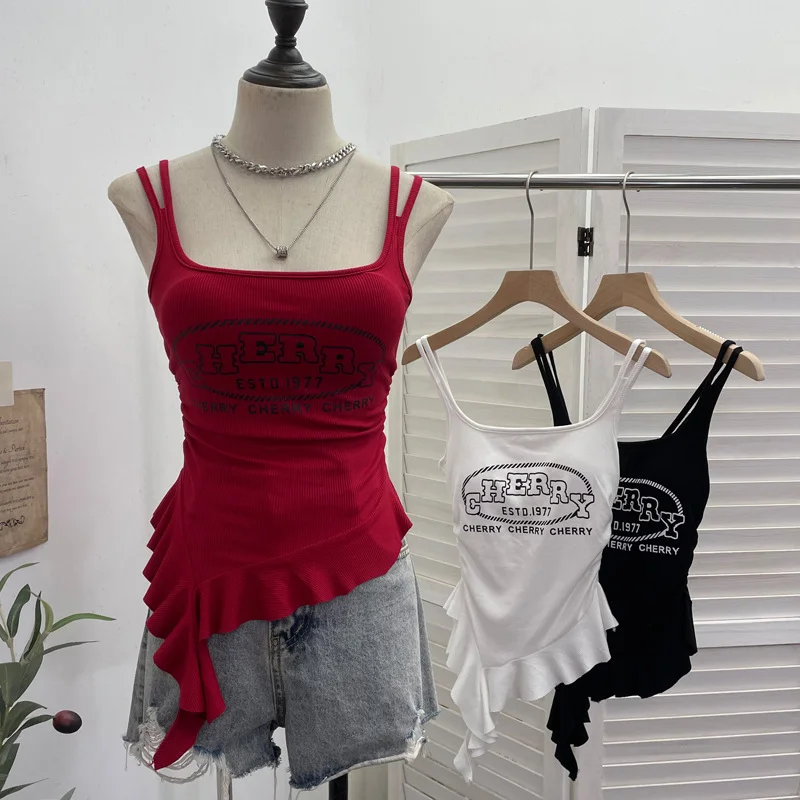 Nigikala Nigikala Tector-Mat T-Shirt With Bosom Tset T-Shirt With Irregular Sling Vest T-Shirt With Tsets 1261