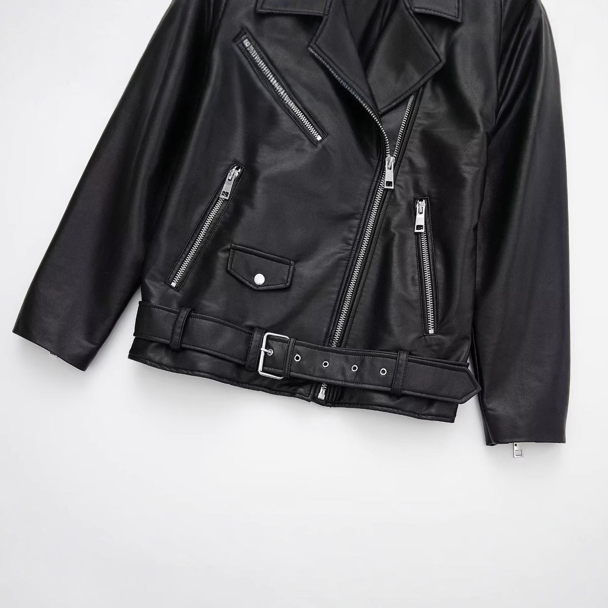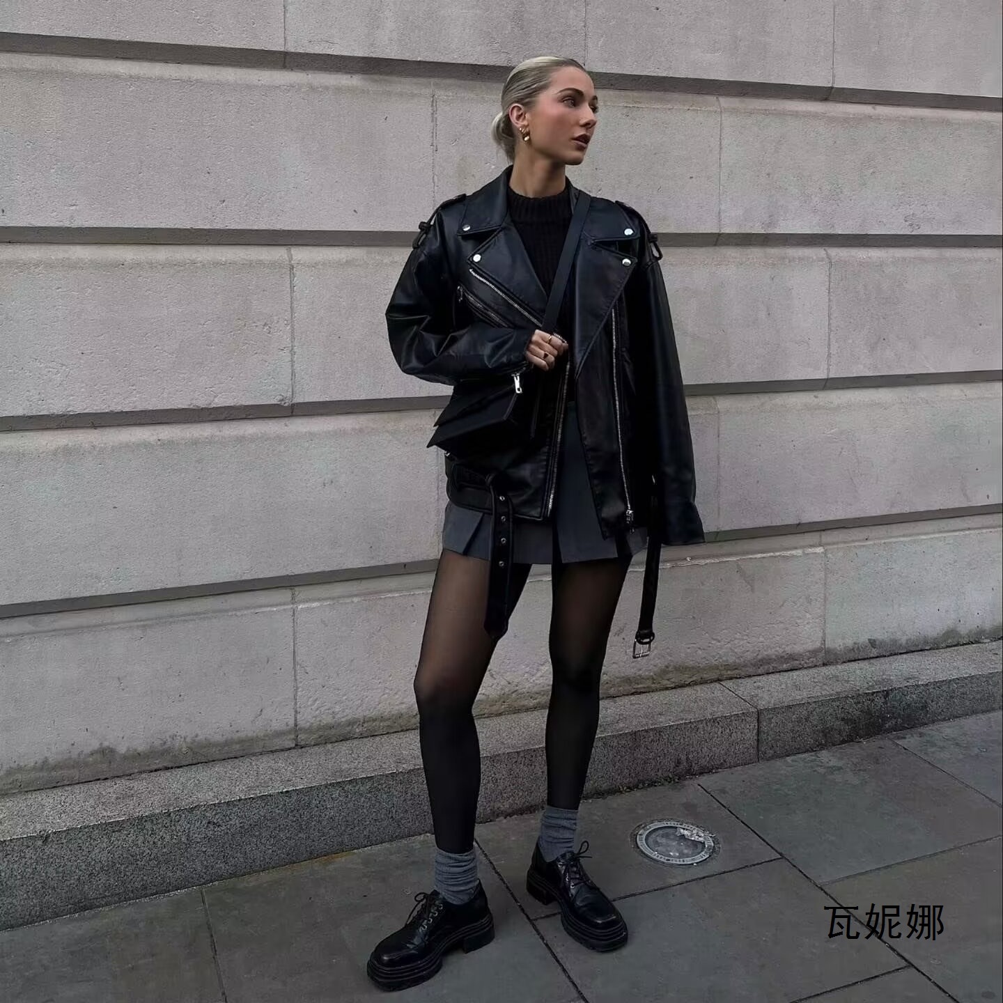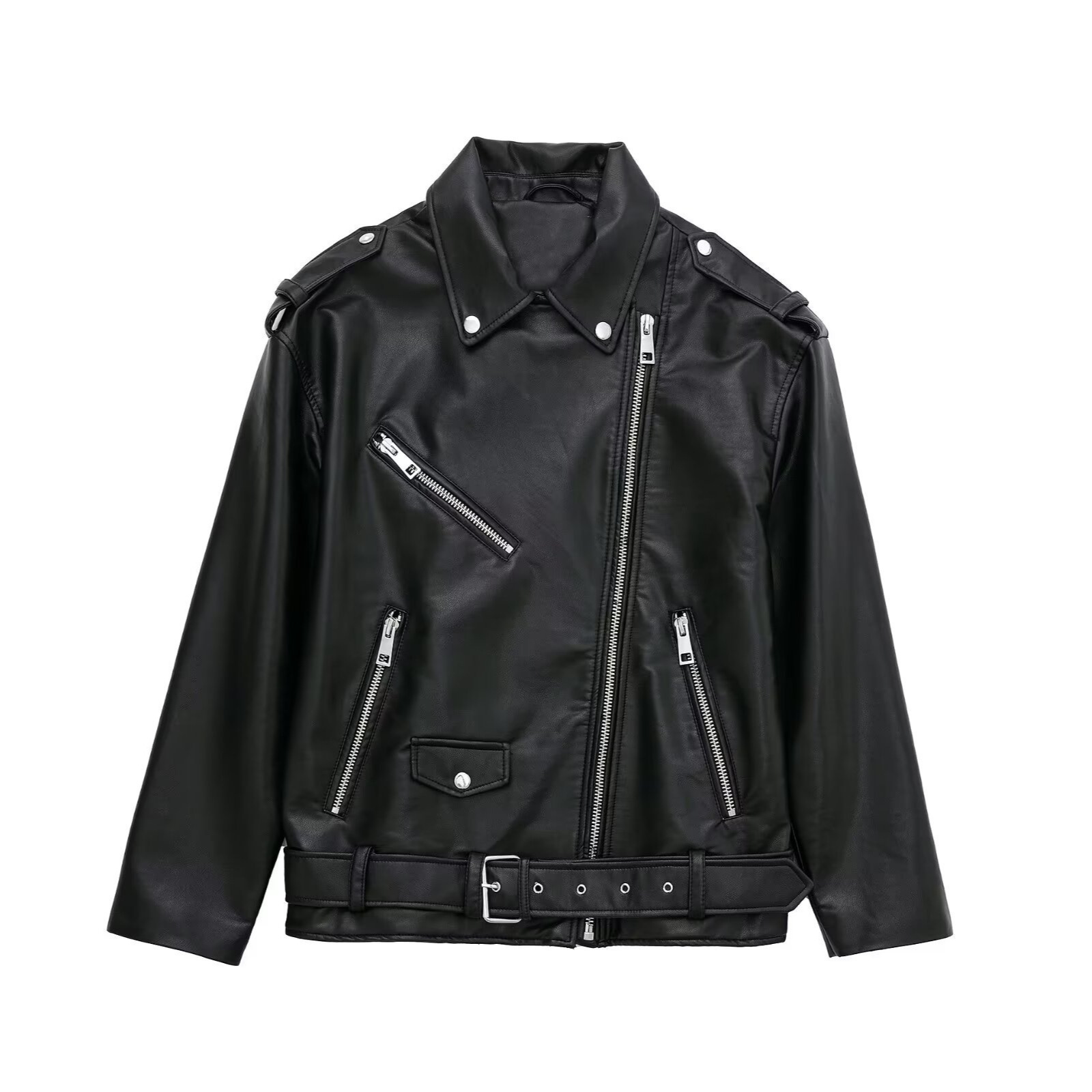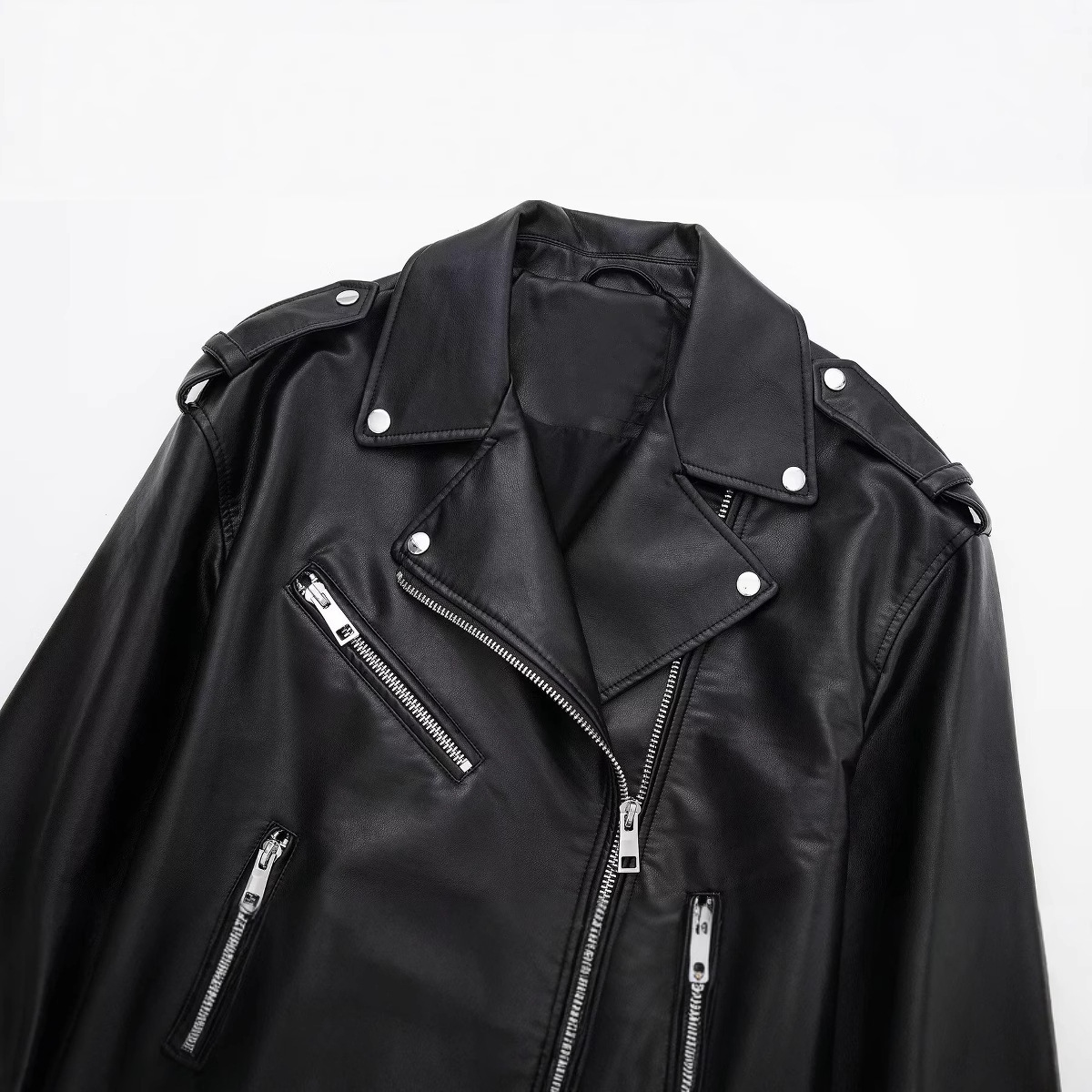 Nigikala Nigikala Temperament Casual Autumn New Imitation Leather Loose Zipper Jacket Jacket Women's Jacket