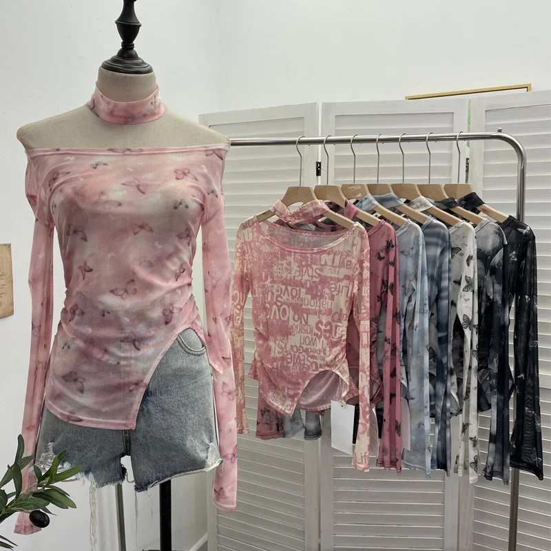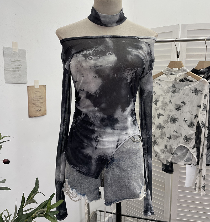 Nigikala Nigikala Tie-Dye-Print Single-Layer Mesh Yarn Lint Sun Hoodie Irregular Long-Sleeved T-Shirt Repair On The Body 1962
