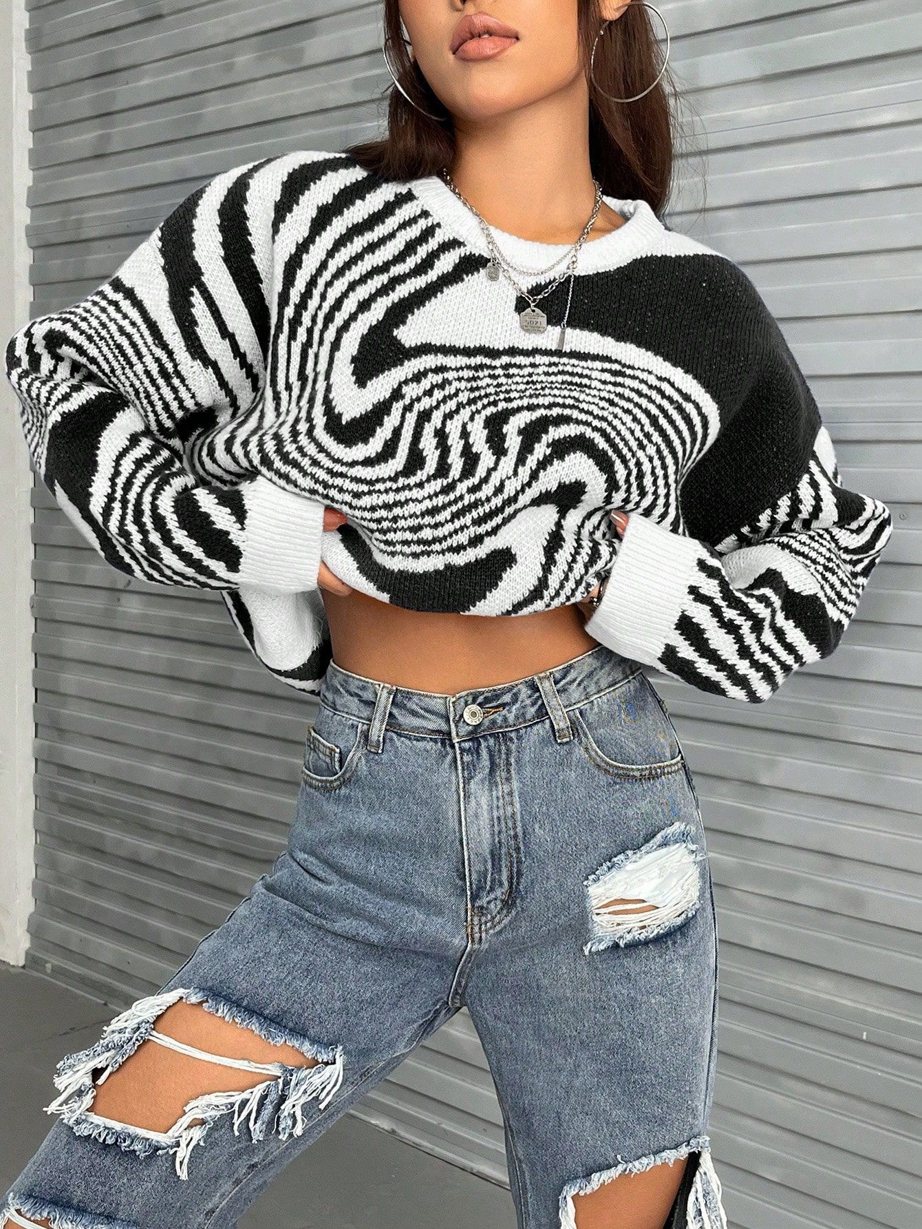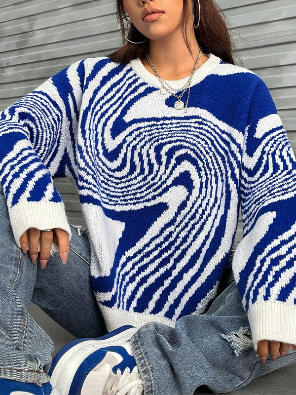 Nigikala Nigikala Vintage Ripple Round Collar Collar Sweater Fashion Design Lazy Knitted Shirt