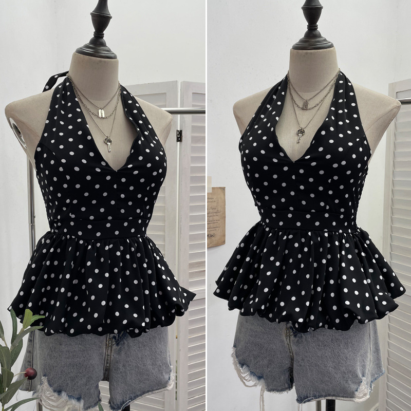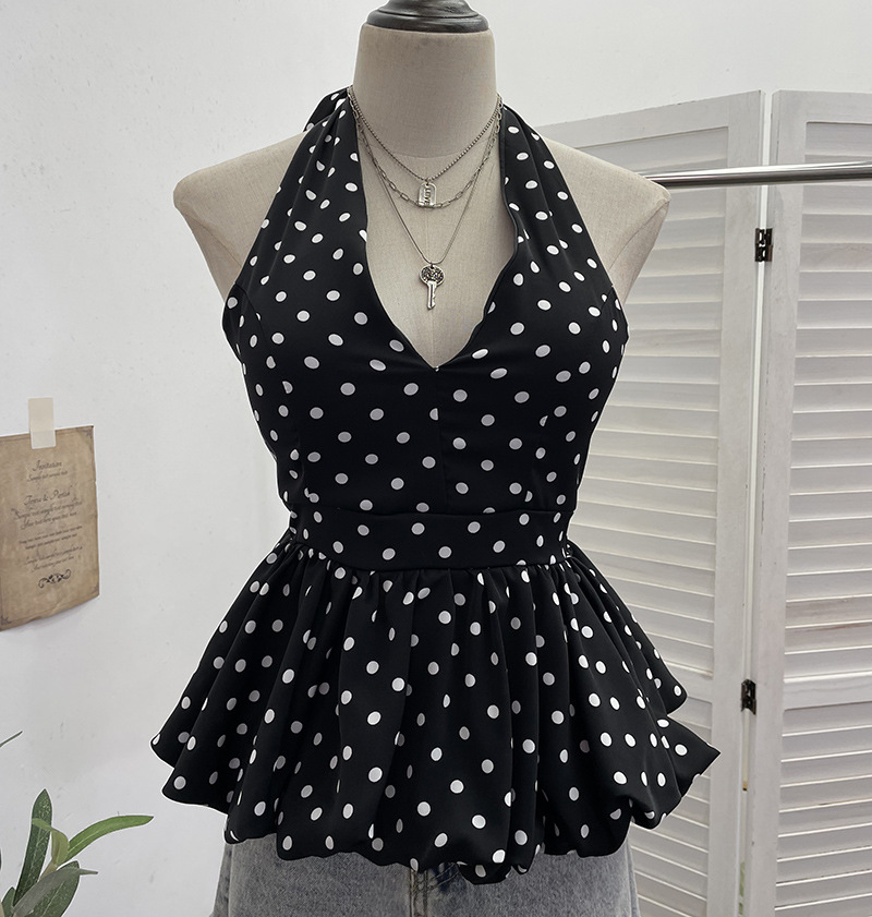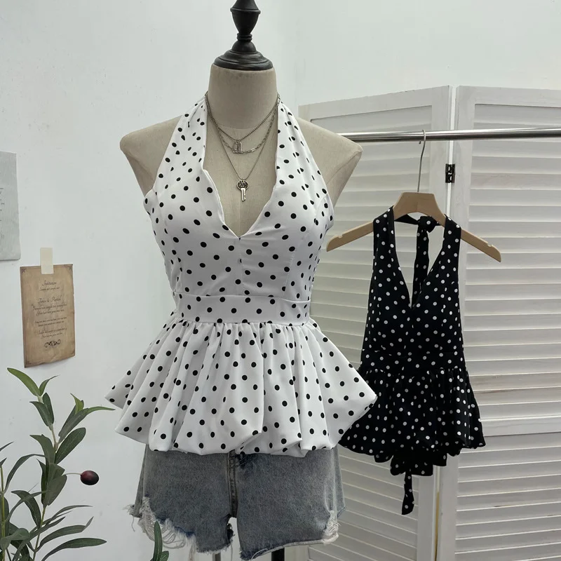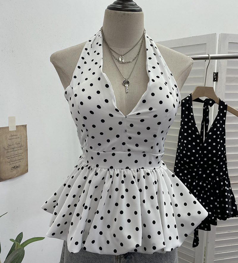 Nigikala Nigikala Want To Show The Back Hanging Neck Tie With Wave Point Sling Vest Skirt Sleeveless Doll Shirt Short Top 9230