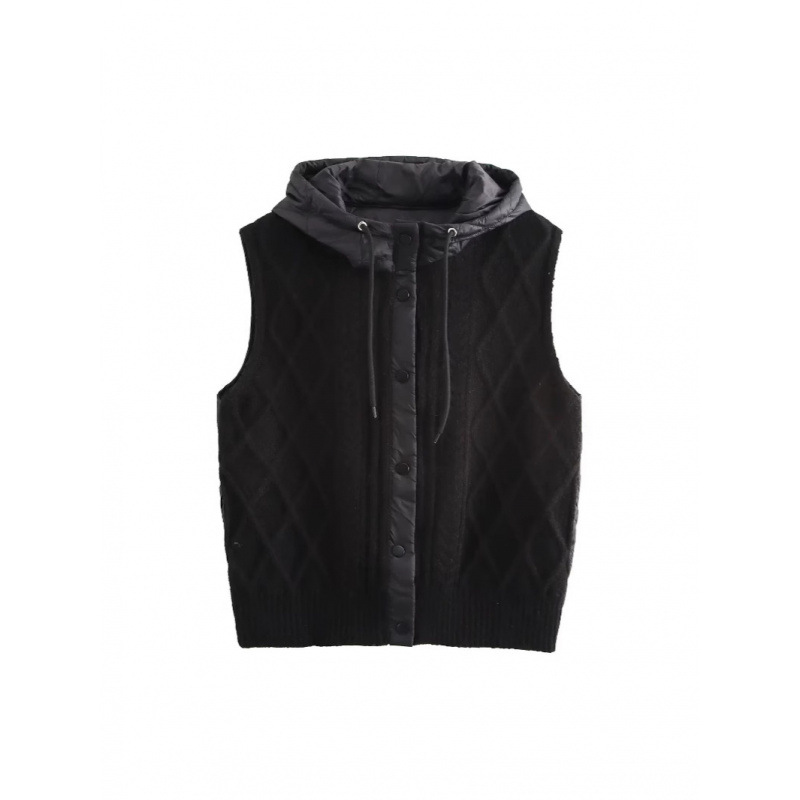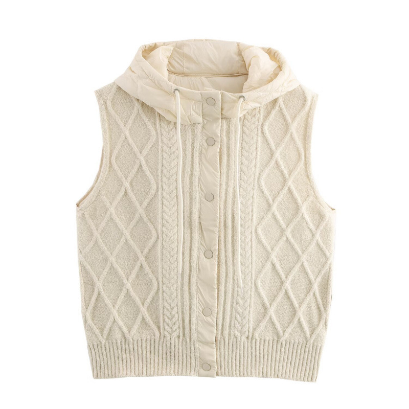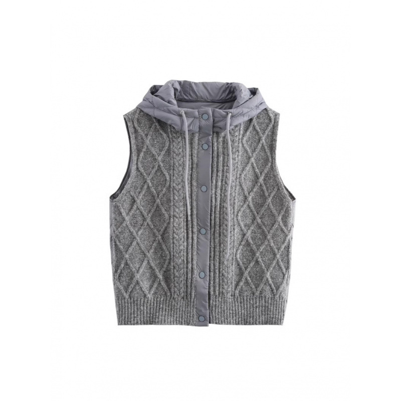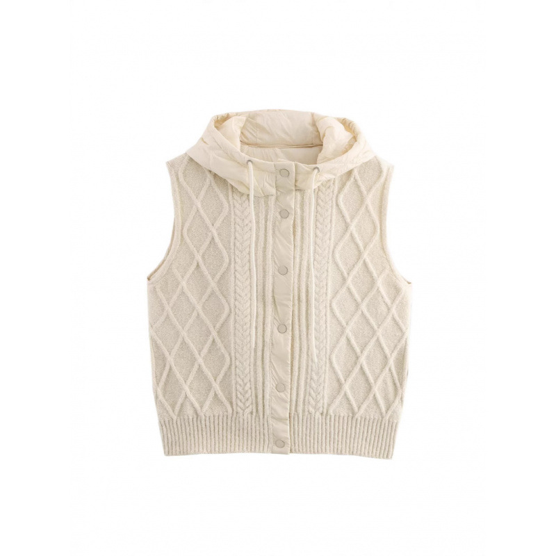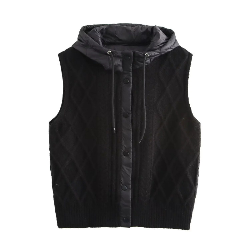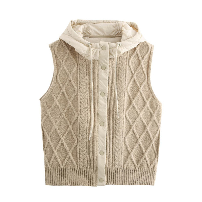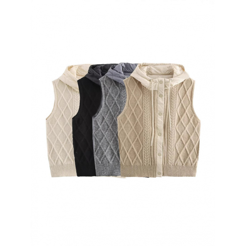Nigikala Nigikala Women's 2025 Winter Fashion Vintage Vintage Vintage Cotton Stitched Knitted Hooded Vest Vest