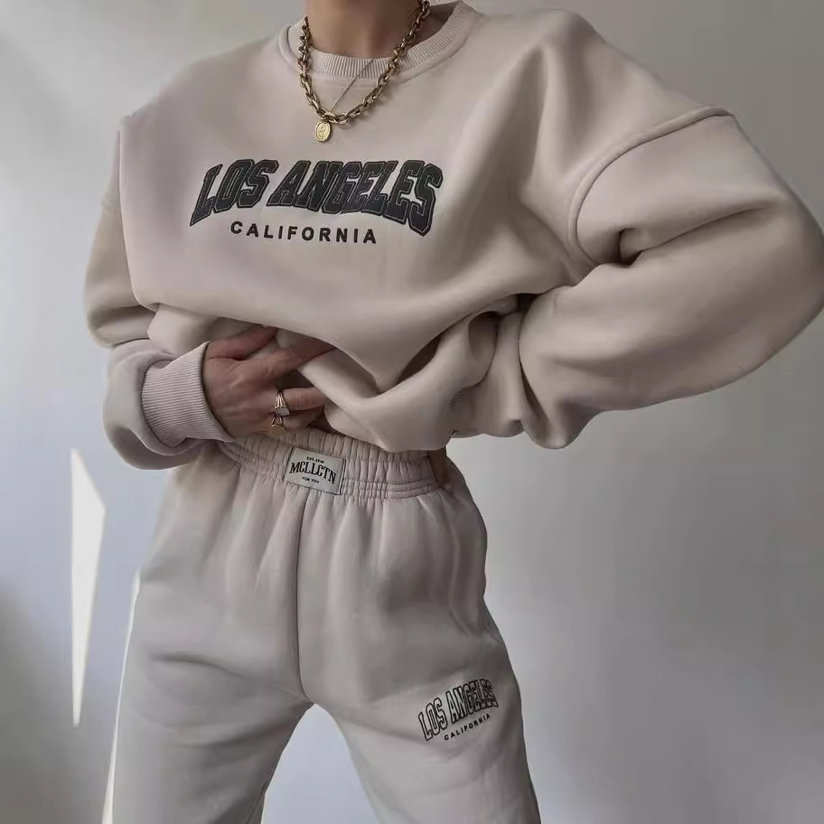 Nigikala Nigikala Women's Casual Fashion Print Thick Set Plus Velvet Long Sleeves Set