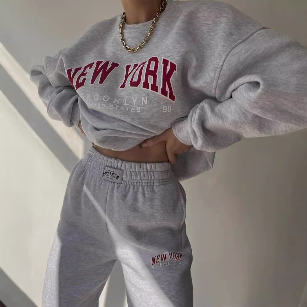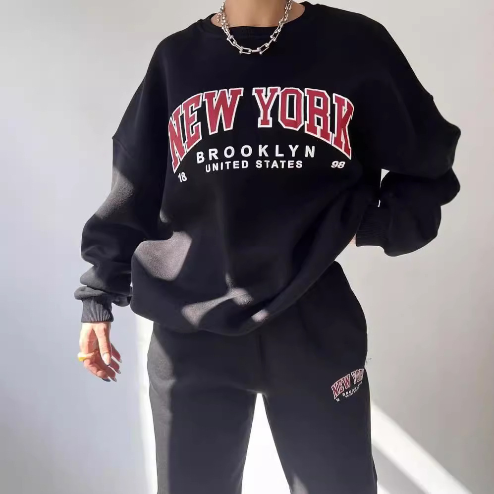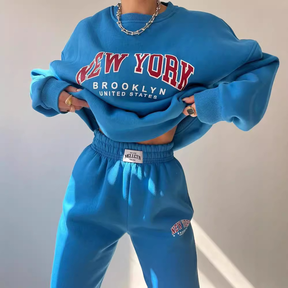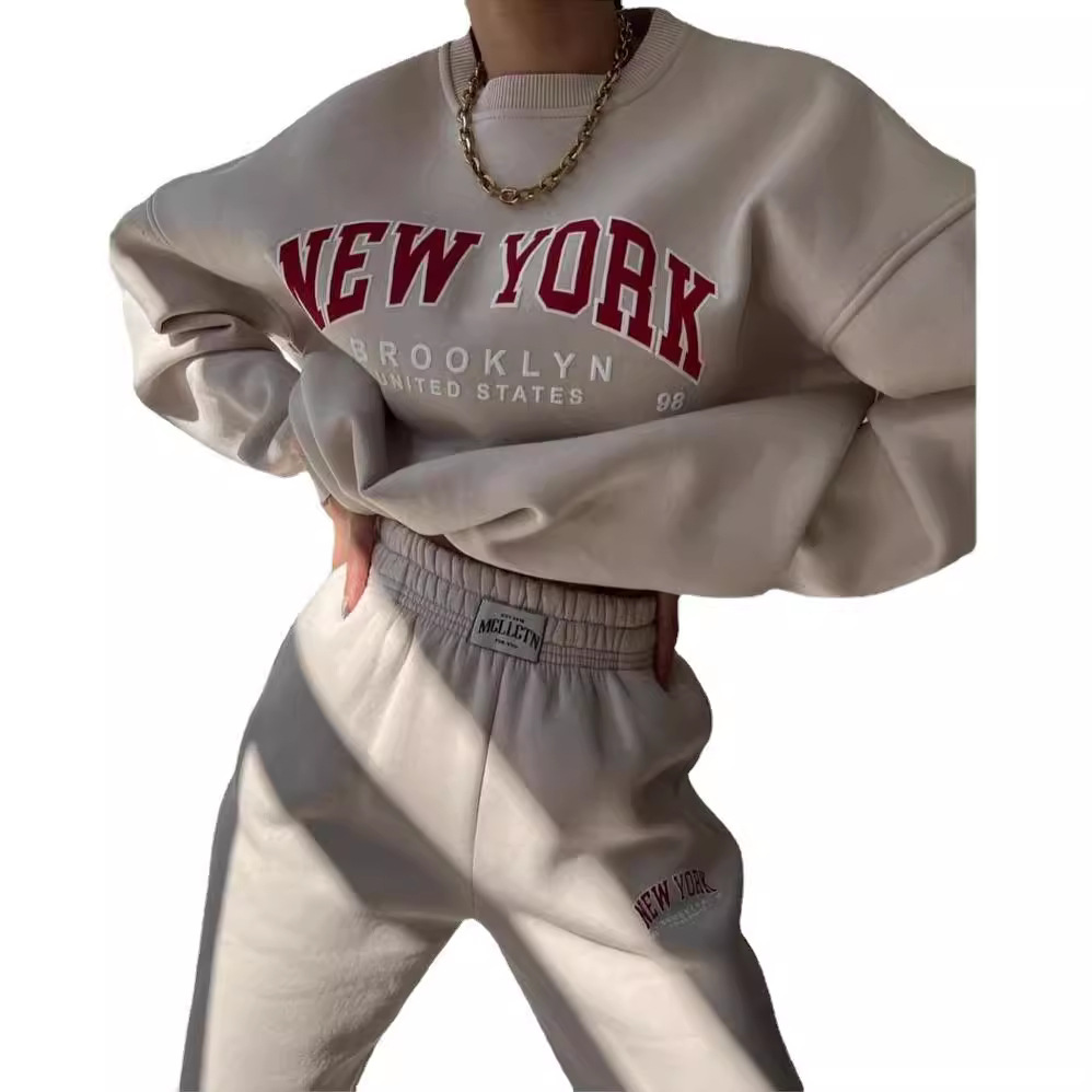 Nigikala Nigikala Women's Casual Fashion Print Thick Set Plus Velvet Long Sleeves Set