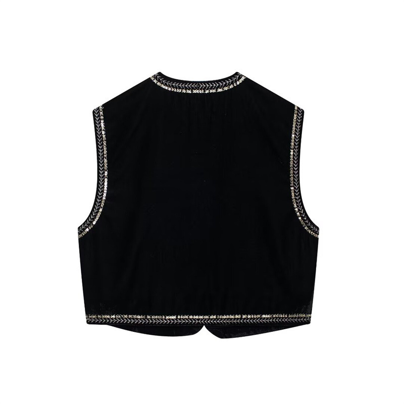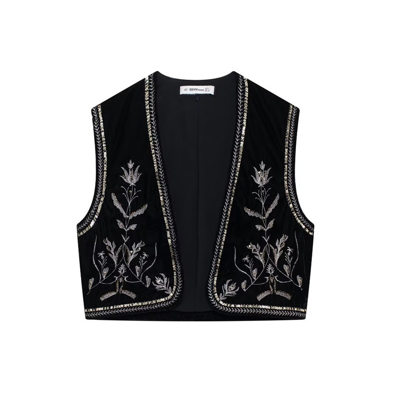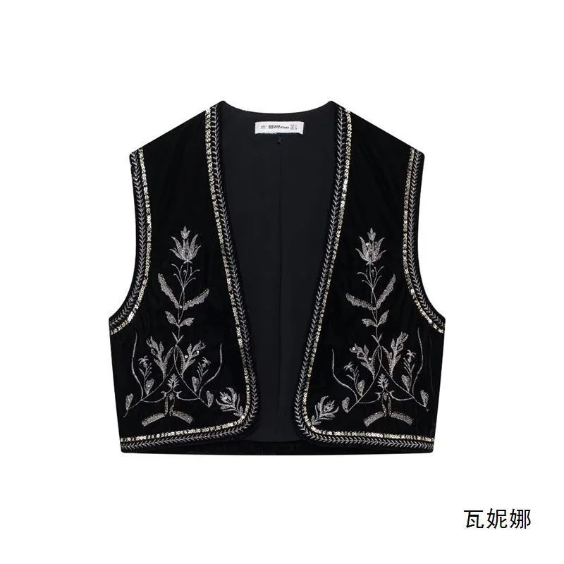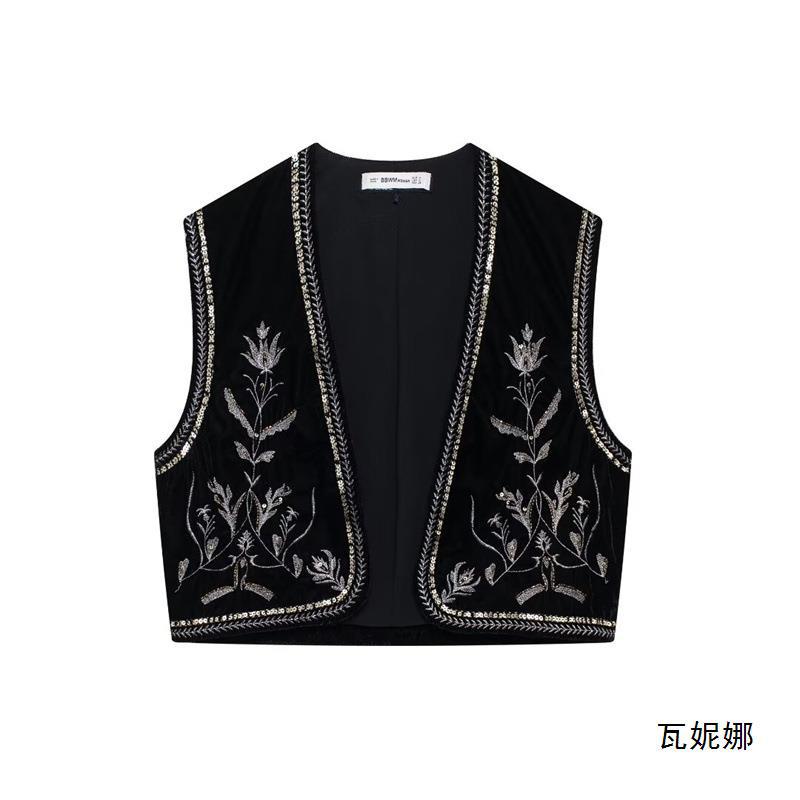 Nigikala Nigikala Women's Casual Street Sleeveless Velvet Embroidered Vests In Autumn 2025