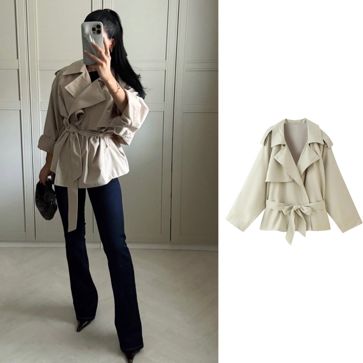 Nigikala Nigikala Women's Clothing 2025 Summer New Temperament Fashion With Belt Long Sleeves With Short Windcoat 4749847