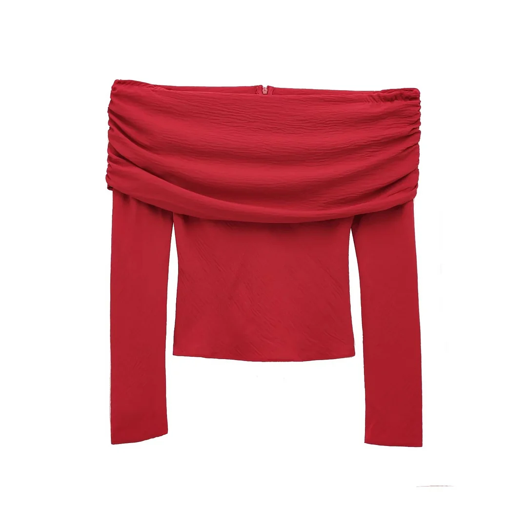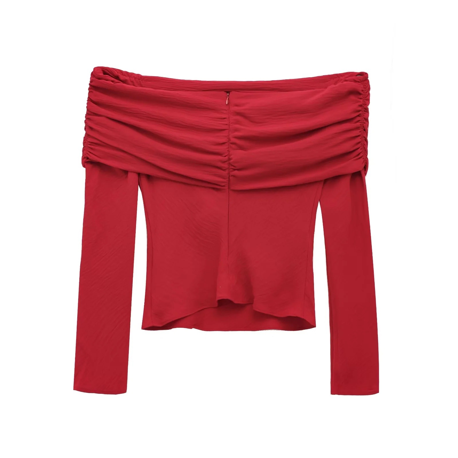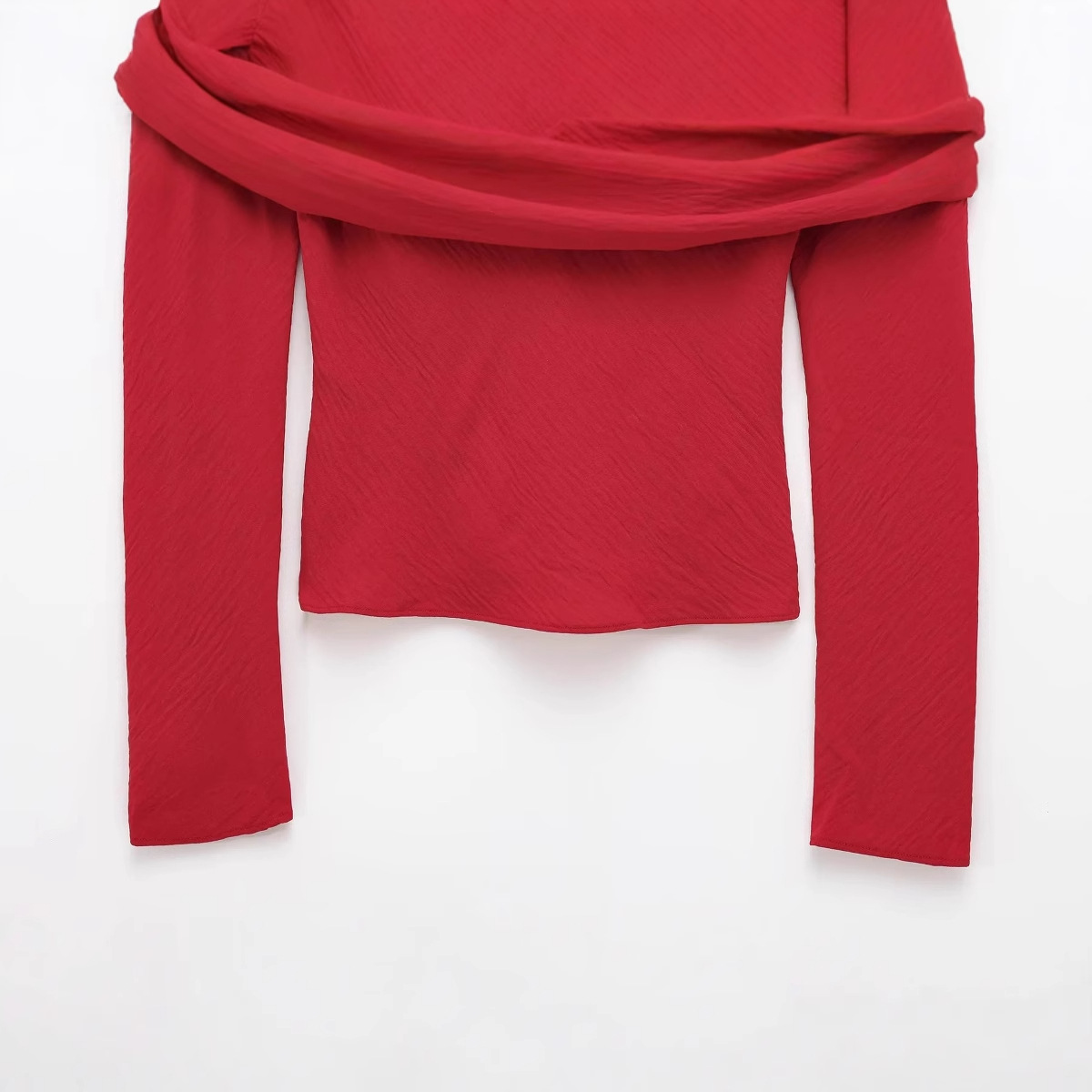 Nigikala Nigikala Women's Clothing Explosion Word Broken Folded Shoulder Repair Soft Chiffon Shirt