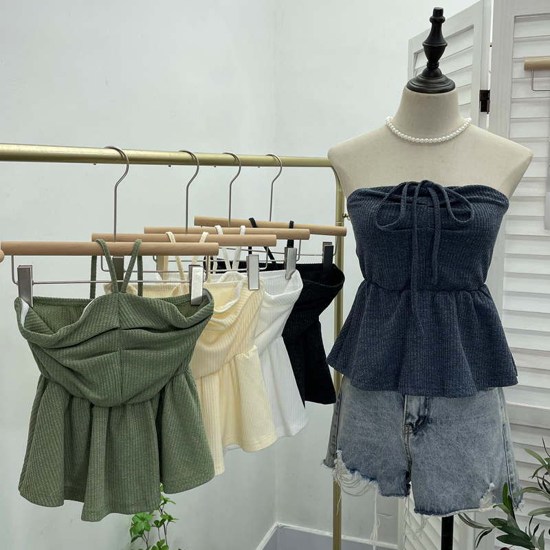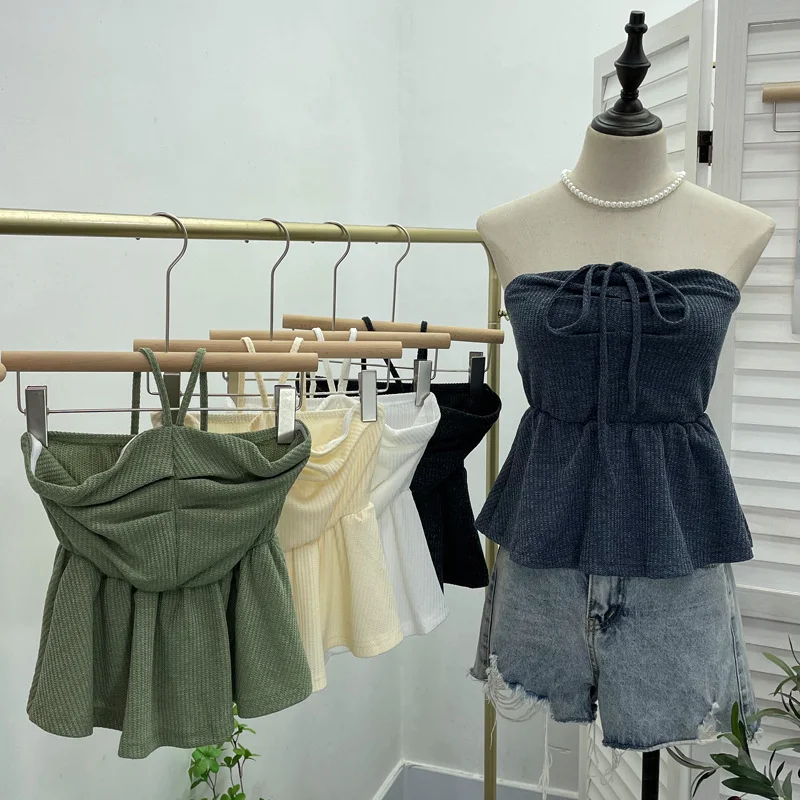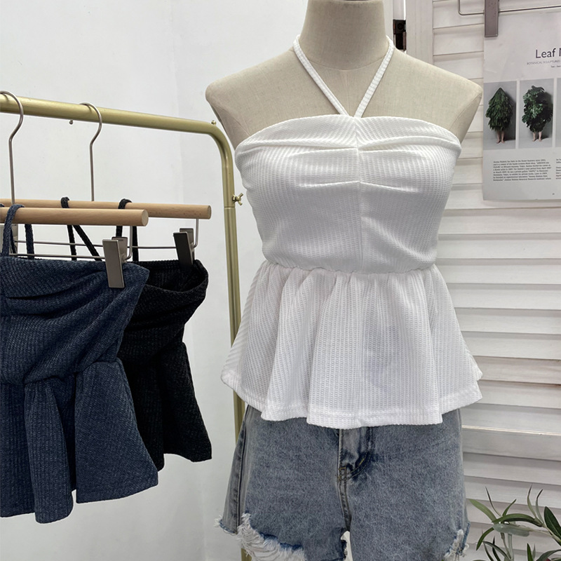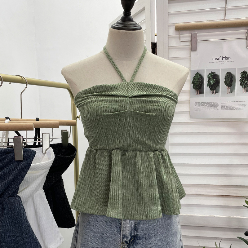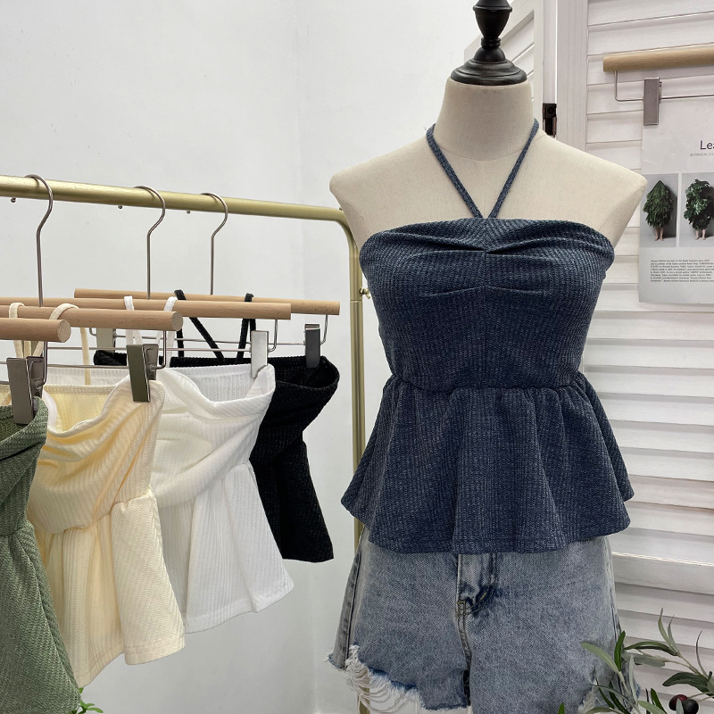 Nigikala Nigikala Women's Clothing Out-Of-Shoulder Hanging Neck Small Sling Vest Outside Wearing Braided Short Sleeveless Top 88951