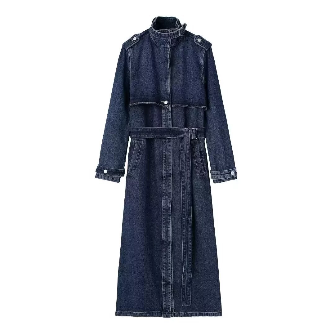 Nigikala Nigikala Women's Clothing Temperament Commuting With Belt Long Denim Wind Coat