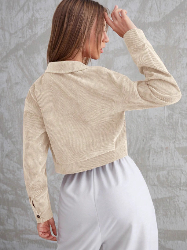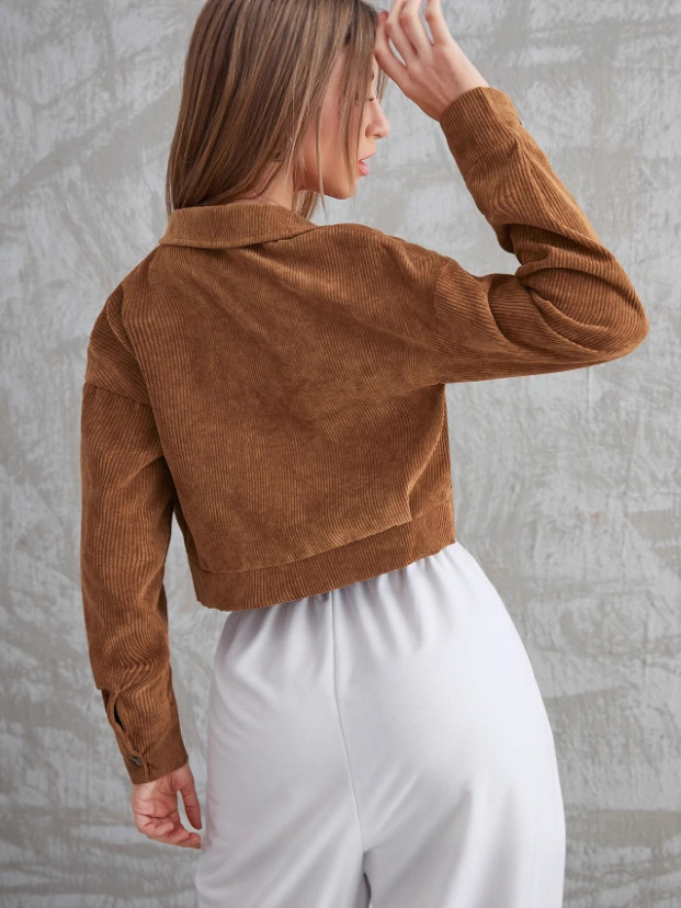 Nigikala Nigikala Women's Corduroy Flip Pocket Button Short Casual Jacket Jacket