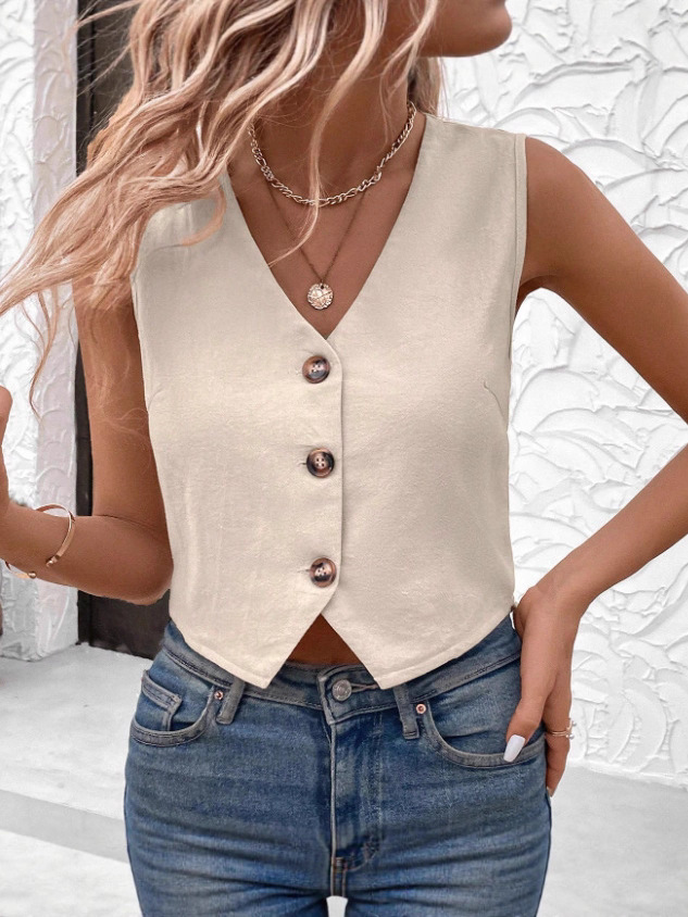 Nigikala Nigikala Women's Cotton Buttonless Sleeveless V Collar Vest Vest Women's Clothing