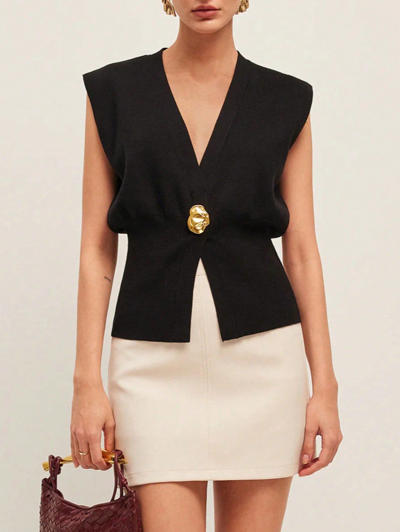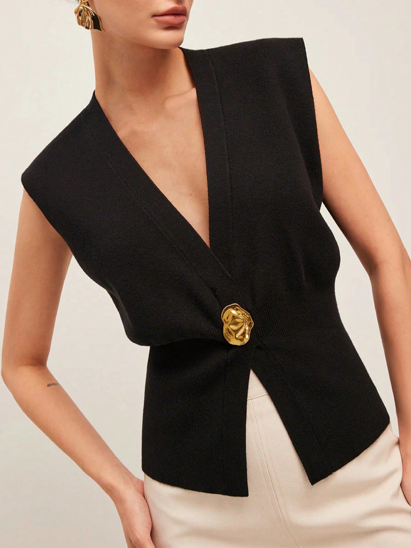 Nigikala Nigikala Women's Elegant Casual Knitted Vest Deep V Collar Simple Fashion Commuting Temperament Top