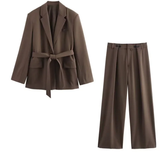 Nigikala Nigikala Women's Explosive Early Autumn Fashion With Belt Straight Suit Jacket + A Variety Of Wear Long