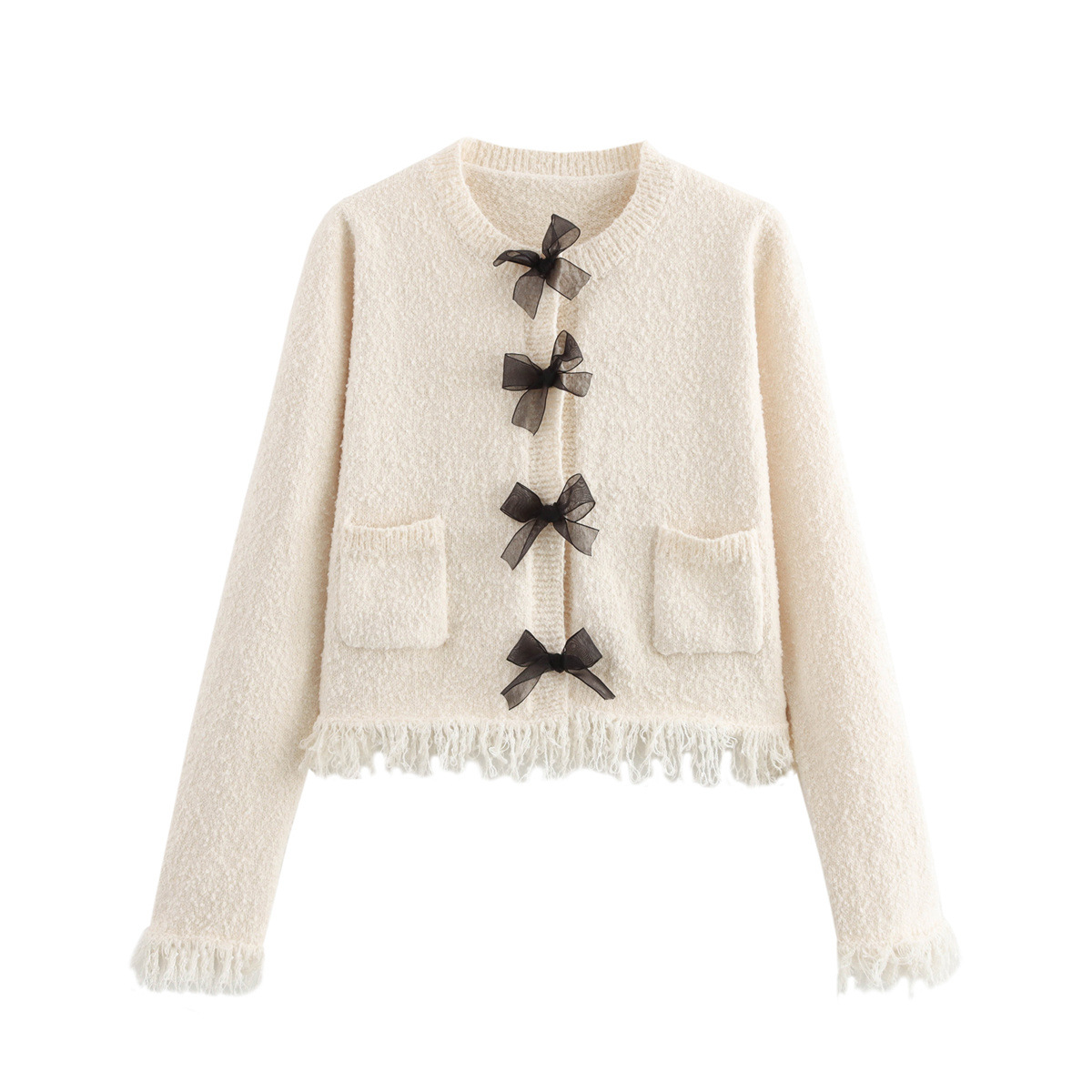 Nigikala Nigikala Women's INS Burst Bow Trim Knitted Coat Knitted Miniskirt
