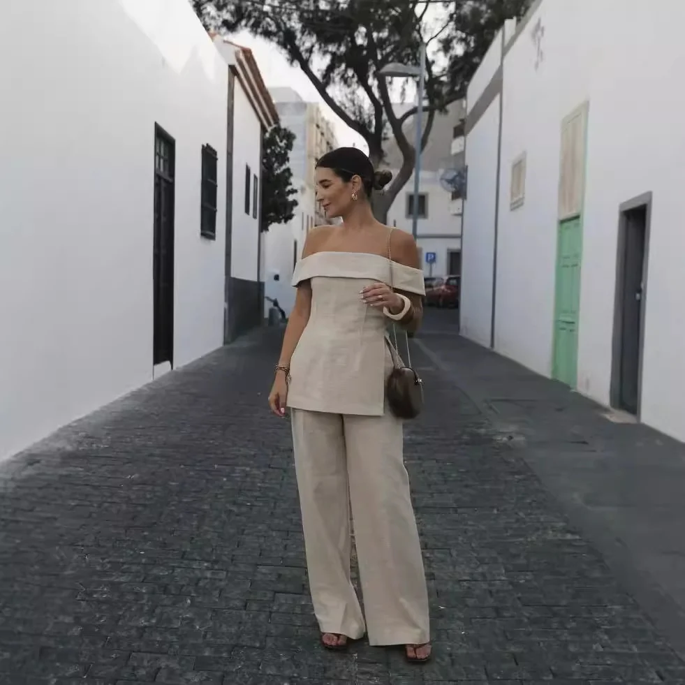 Nigikala Nigikala Women's INS Burst Side Open Fork On The Shoulder Trousers Set