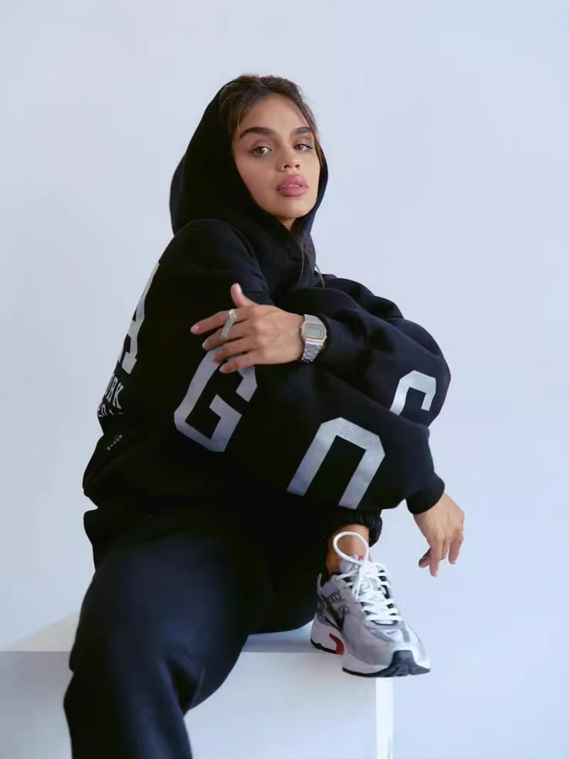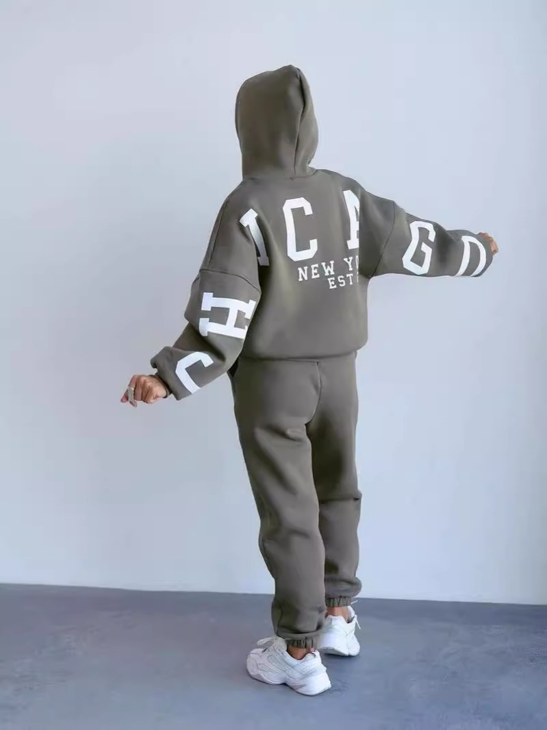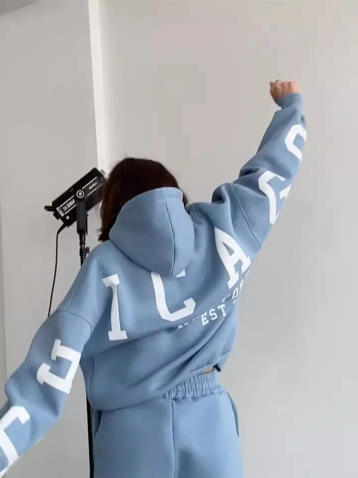 Nigikala Nigikala Women's Loose Leisure Back Print Thicken With Long-Sleeved Jacket Suit Women