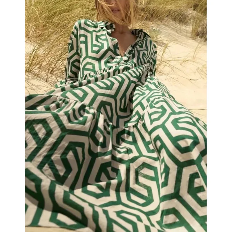 Nigikala Nigikala Women's New Dress Fashion Long-Sleeved Collar Printed Shirt Dress
