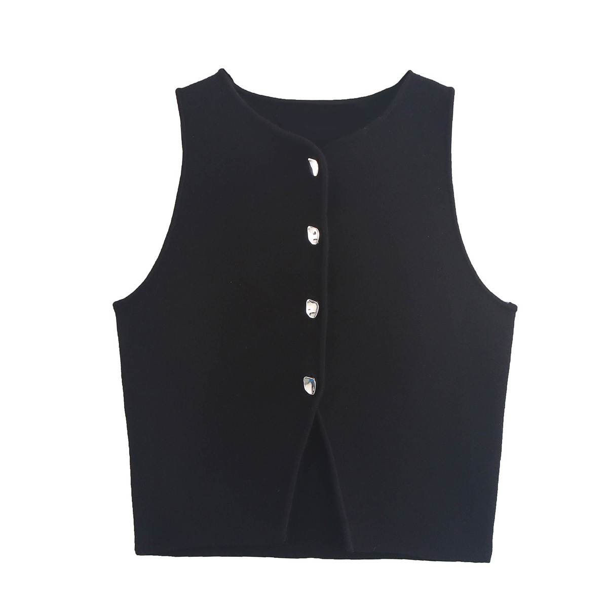Nigikala Nigikala Women's New Fashion Pure Color Round Neck Loose Casual Flat Needle Sleeveless Short Top