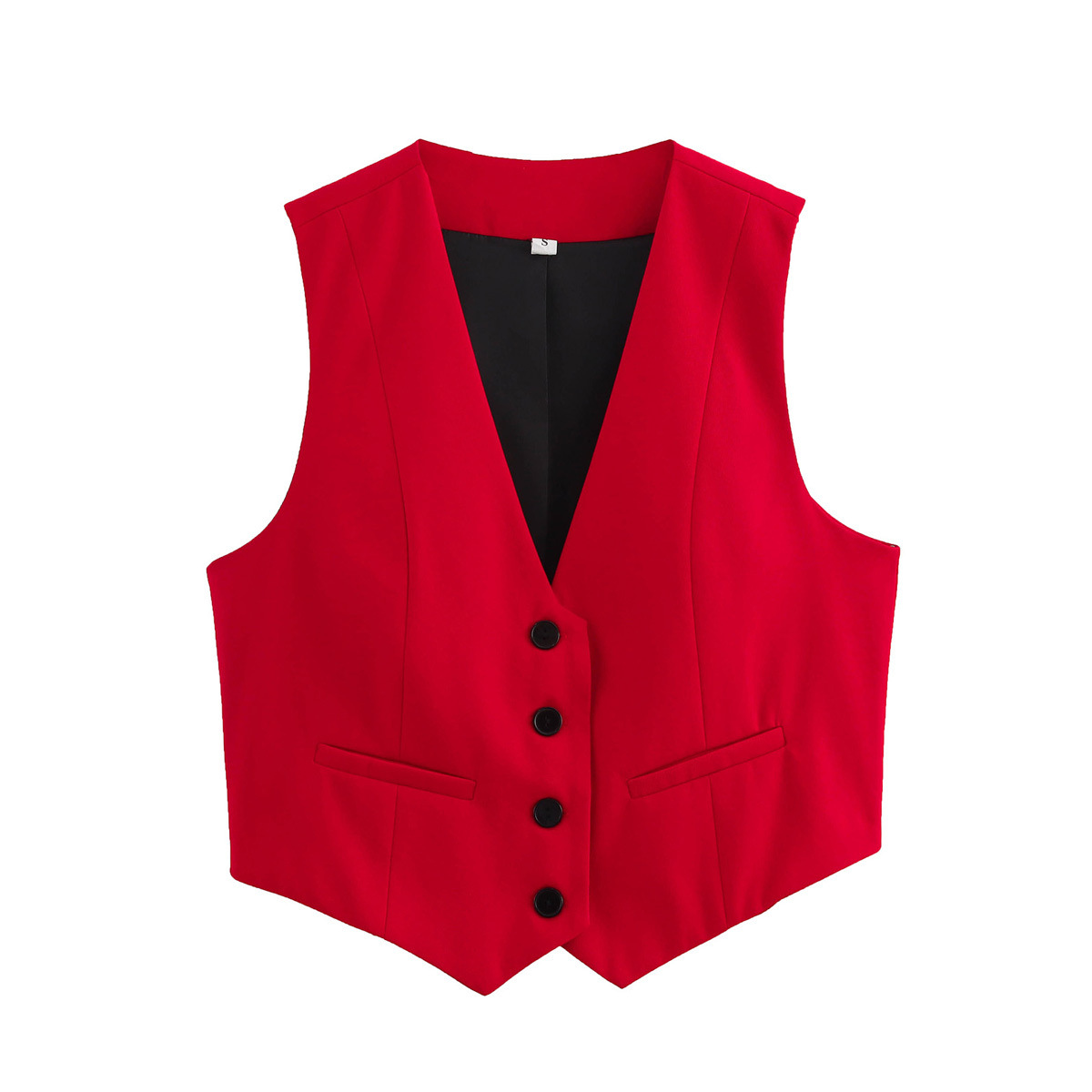 Nigikala Nigikala Women's Retro Solid Color Candy Color V-Neck Short Suit Vest / Horse Clip Cane