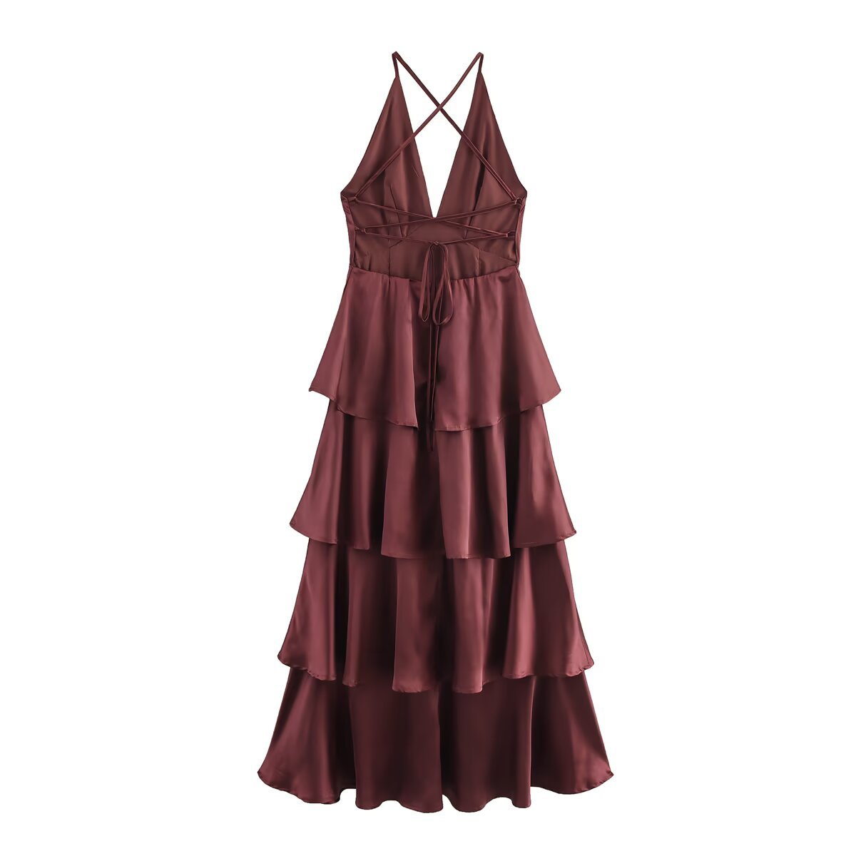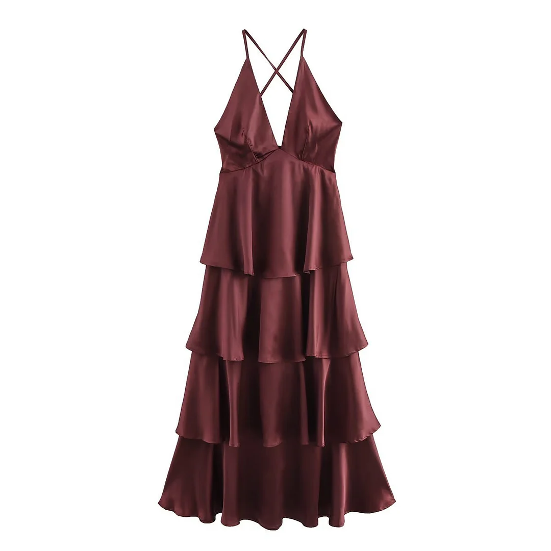 Nigikala Nigikala Women's Summer Romantic French Elegant Dinner Light Dress Suspension Deep V Brass